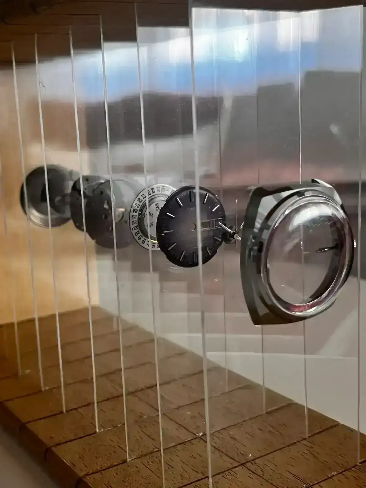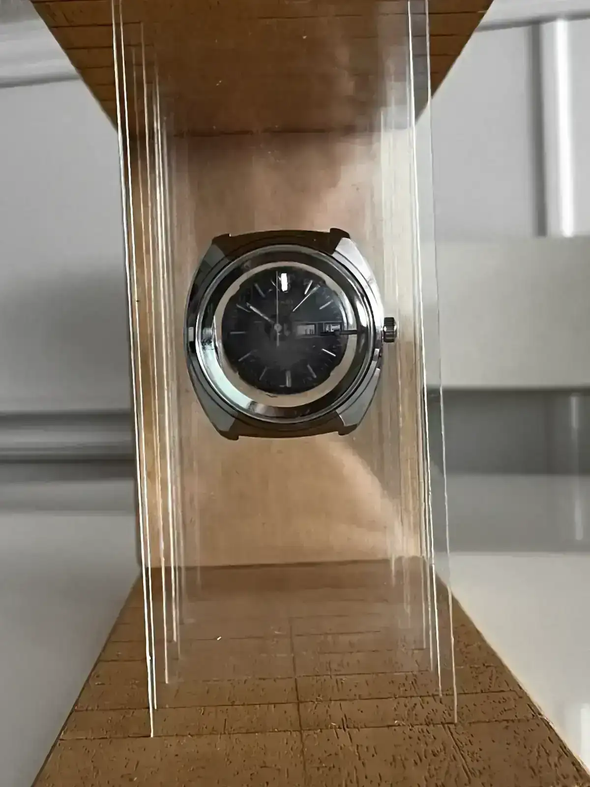 - Caja del reloj,caja básica de acero inoxidable con cristal de plexi bombé.