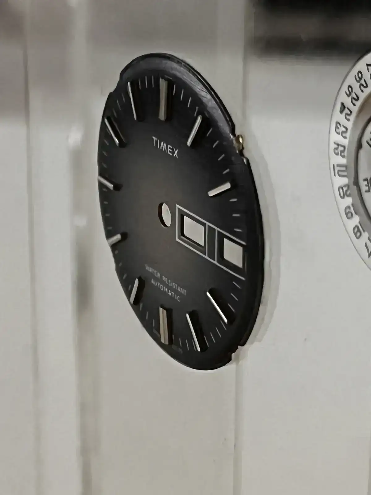 La esfera o dial no tiene demasiado misterio,si comentar que en este caso para poder pegarlo he tenido que quitar las patas de esfera, son el anclaje de la esfera a la maquinaria las cuales tienen la posición correcta para que encaje y queje fija.