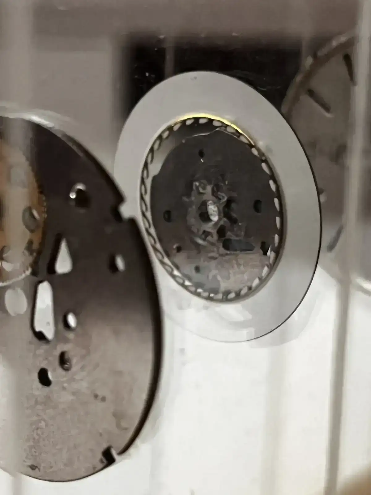 - Placa superior de la maquinaria donde engrana las ruedas del datario.
