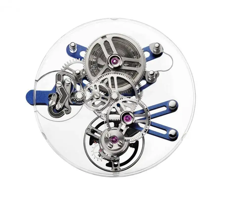 Menudo interior, me parece espectacular, me quedaría horas embobado mirando su funcionamiento, pero como reloj para uso normal como que no lo veo, acabaría loco buscando las agujas