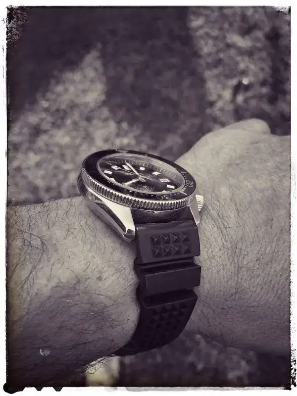 Pues tras ver tanto seiko marinemaster por aquí y tan diversas opiniones sobre su correa de caucho ( a mi si me gusta, le da un look bastante retro al reloj ) me puse a la búsqueda de una para calzárselas al Anko... 22 mm ... adios a la original de seiko