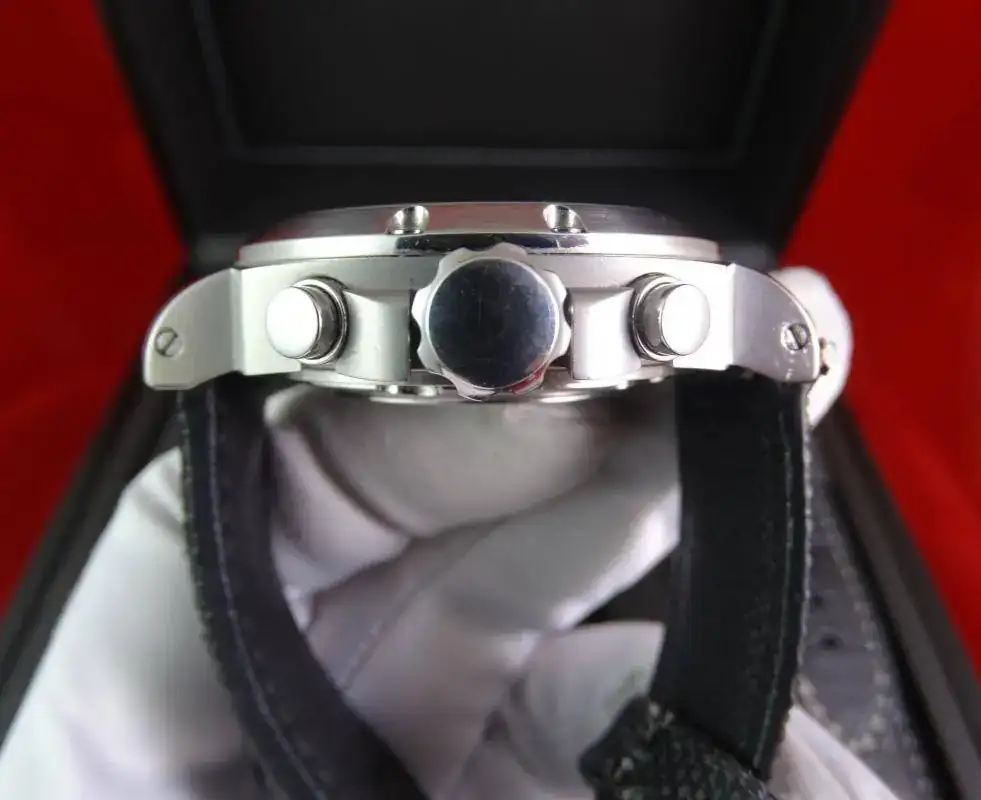 El reloj es de 2012, proviene de concesionario nacional. Ha tenido un uso moderado y bien cuidado como se puede apreciar en su estado, nunca pulido. Ligeras señales de los cambios de correa donde la tornillería. Incluye todo el set, formado por tríptico de garantía, manual, etiqueta, caja y sobre-caja de cartón. En su interior un movimiento que se mueve en +4 seg y con una amplitud de 294º.