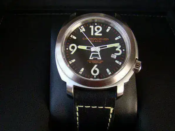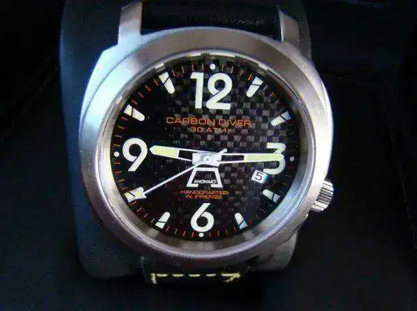 ANONIMO FIRENZE CARBON DIVER 300 m. edición limitada de 299 piezas, un bonito reloj del que se nota la relación de esta casa con Panerai.