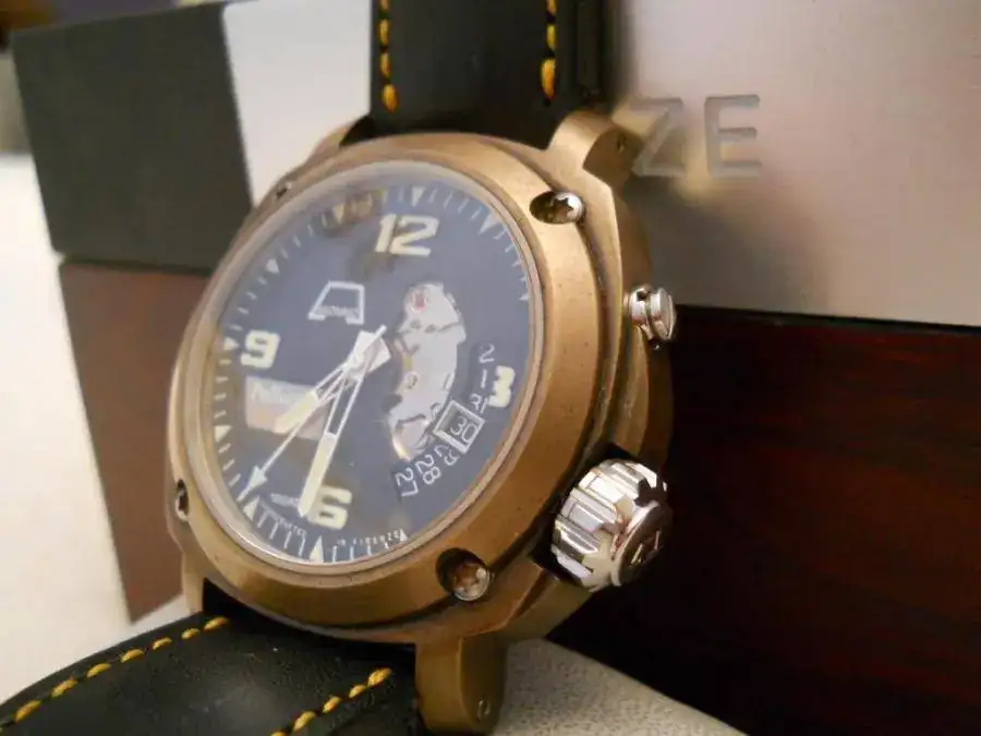 La caja es de bronce marino (bronce UNI 5275) Una aleación llamada bronce alumínico con la que se fabrican, entre otros, las hélices de los barcos rompehielos por su excepcional resistencia a la corrosión, especialmente en atmósferas salinas.