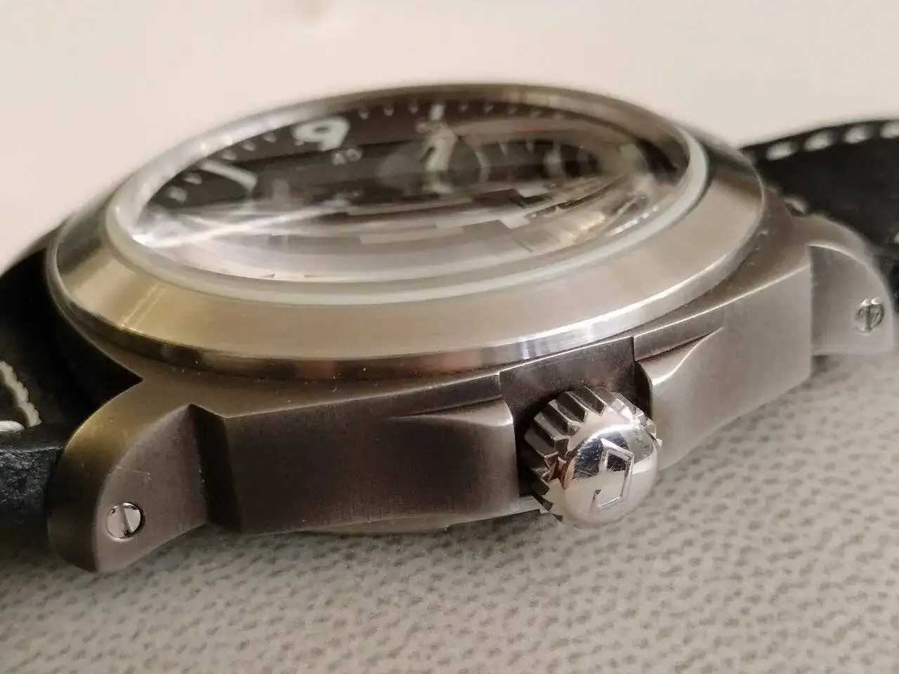 Tiene caja de 42 mmfabricada en acero con tratamiento “ox-pro” que le da ese aspectocomo envejecido y una resistencia superior al tradicional PVD. Esteacabado es realmente interesante. Se diferencia del PVD en que enlugar de ser una capa adherida a la superficie, es una técnicaeléctrica y química que ennegrece el metal a nivel molecular. Esteproceso consta de 14 pasos .Esta técnica fue aplicada ydesarrollada por la marina italiana como un tratamientoantirreflectante para instrumentos ópticos. (texto del compañero@Maese_P).