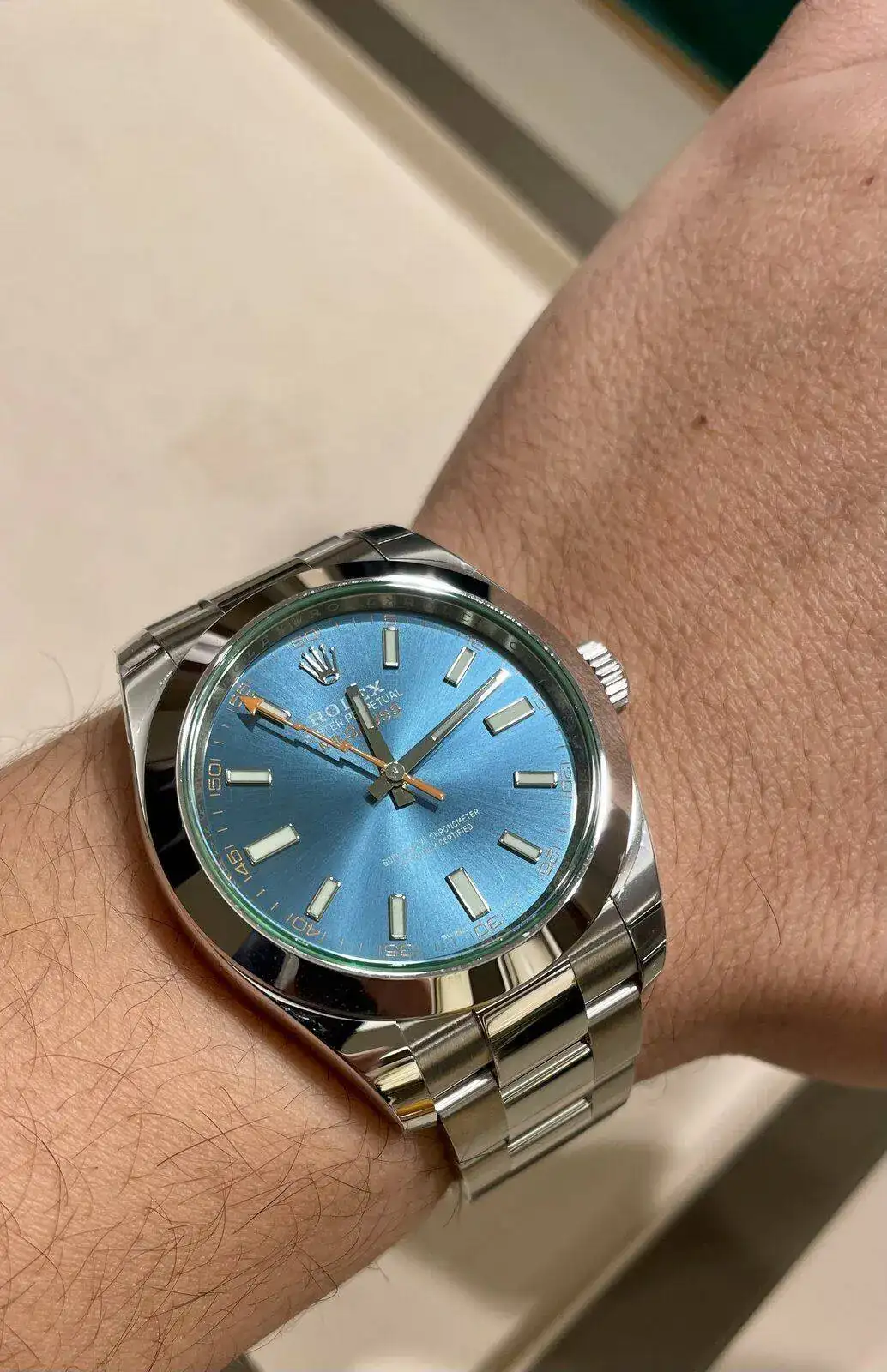 El Milgauss es una pieza única….ya que tiene varios detalles que lo hacen que sea una pieza especial (zafiro verde, trasera muy parecida a la del dweller, corona más ancha, su esfera y segundero….)Me gusta mucho el Sub, pero es que el Milgauss azul me flipa![]()