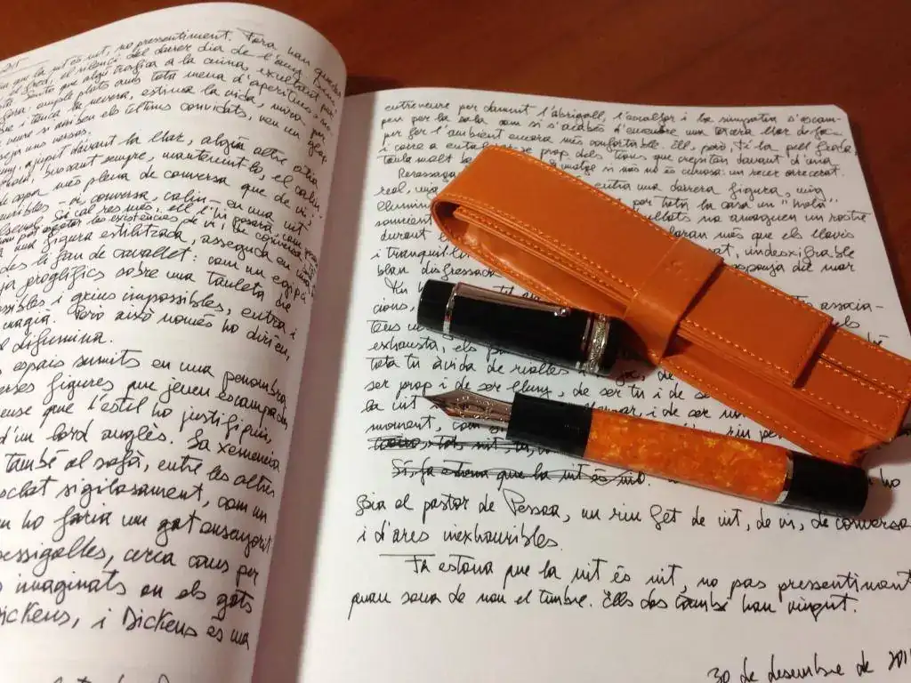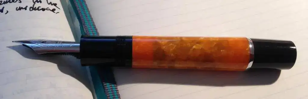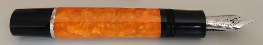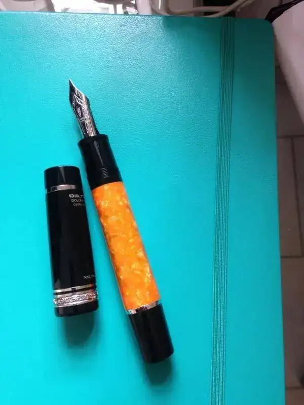 Un tema recurrente que aparece en el foro es el temor a usar la Delta Dolcevita Oversize como eyedropper, sobre todo por las consecuencias que ello puede tener en el color del cuerpo. Pues bien, me ha parecido que a más de uno le podría interesar ver cómo ha quedado mi pluma después de casi un año y medio de utilizarla como eyedropper. Sin duda, el color naranja se ha ensombrecido un poco, pero a mí no me molesta lo más mínimo; es un oscurecimiento que no me parece significativo ni me molesta. Claro que cada uno tendrá su opinión.