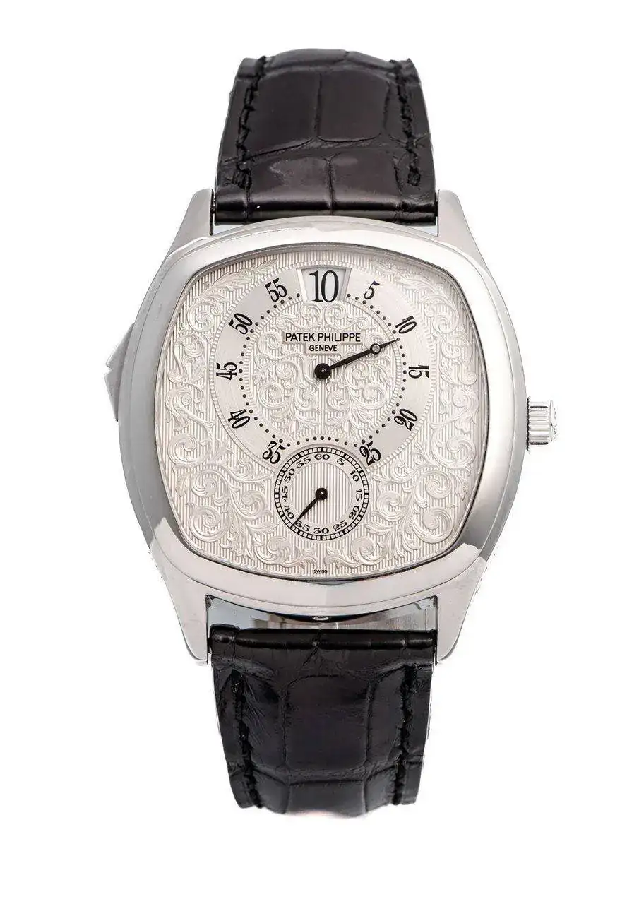 Lote 141. Patek referencia 5275P-001 creado para celebrar el 175 aniversario de la marca. Horas saltantes sonoras con silenciador. Caja de platino con grabado en la carrura y fondo. Y esfera