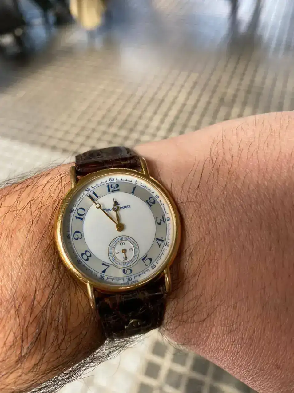 Al comentarle a mis padres mi afición nueva por los relojes me ha dado por rebuscar en los que había en su casa y me he encontrado el reloj con el que solía ir mi padre a trabajar. Es un Maurice Lacroix de cuarzo que andaba perdido por un cajón. Tenía cristal deteriorado y la pila andaba gastada. Por lo pronto le he puesto la pila y le he cambiado el cristal por uno de zafiro.