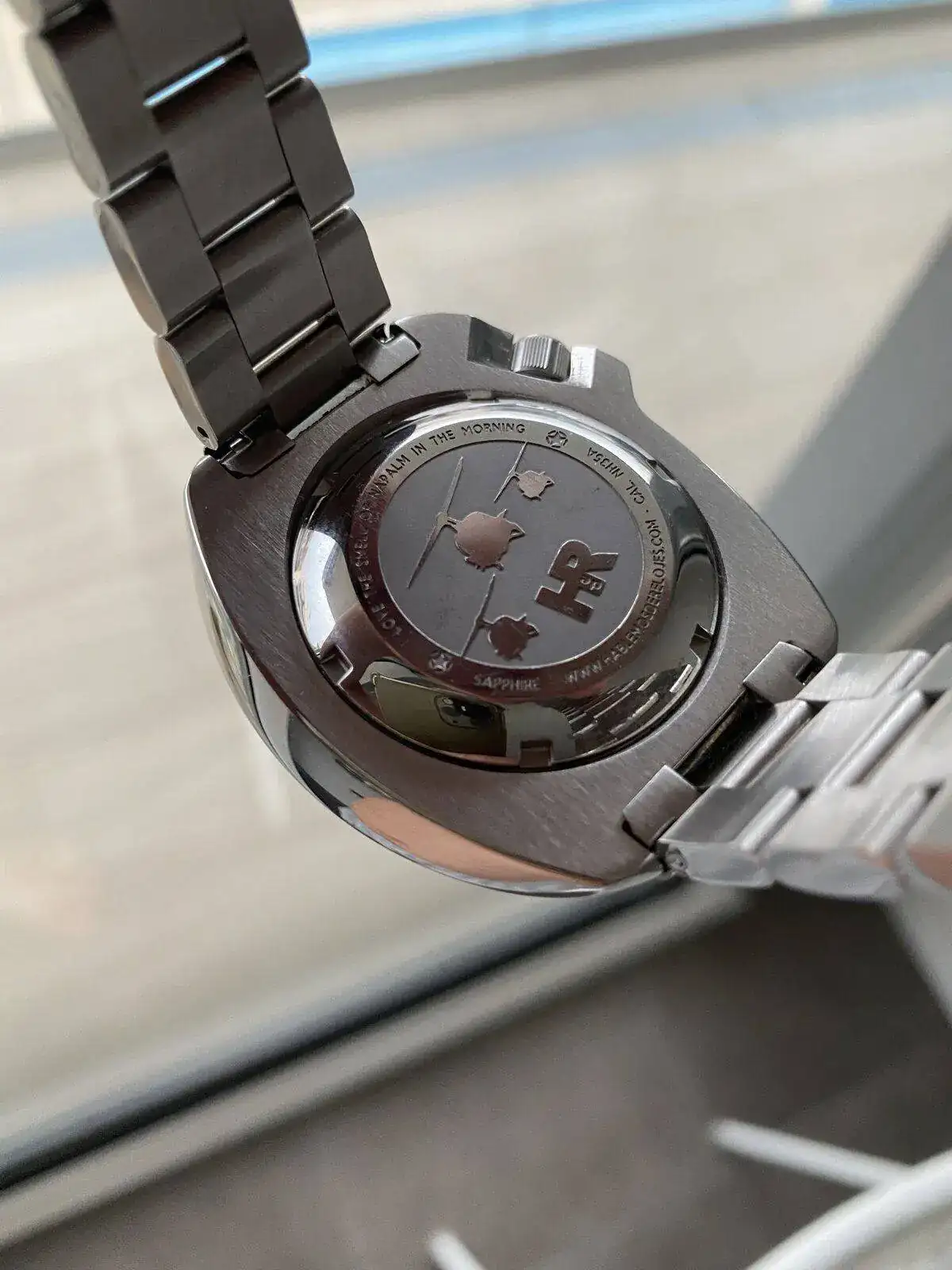 Saco a venta este reloj edicion creada por HDR, con calibre seiko NH35 automatico, caja de 44mm, bisel ceramico, cristal de zafiro con AR, lumen excepcional, esfera azul preciosa, la tapa roscada esta personalizada con un vaciado que nos lleva a una de las escenas míticas del film, aparte de la frase mitica de Robert Duvall abrazando dicho grabado.