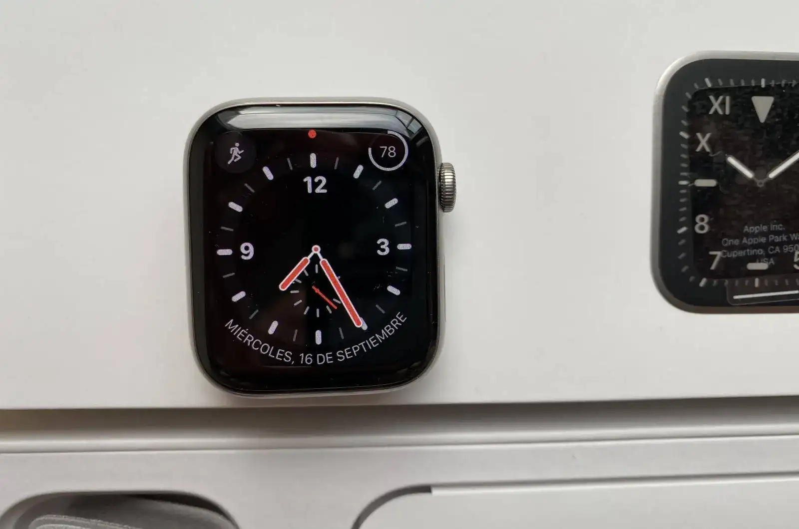Vendo Apple Watch 5 edición especial en titanio y Cristal de zafiro con un pvp de 899 de hace un año con todo un año aún de garantía oficial de Apple ya que fue comprado en Apple directamente. Esta en perfecto estado como podéis ver en las fotos ya que apenas ha tenido uso. Sin golpes ni rallas, sólo un pequeño roce superficial sin rallar que sacó en una de las fotos y que sólo se ve según incide la luz.