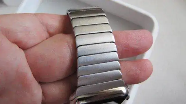-La pulsera que lleva puesta en las fotos (es "aftermarket" muy cómoda y de muy buena calidad, -puesta casi no se distingue de la original-)