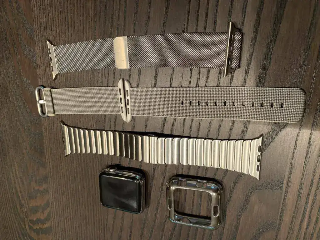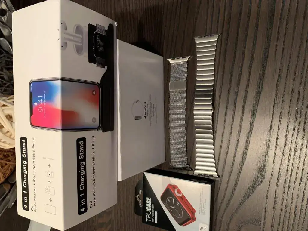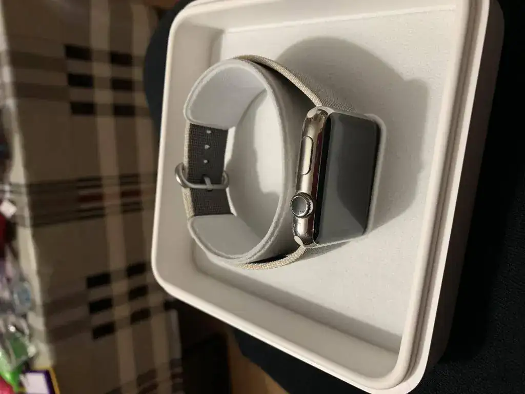 Vendo un Apple Watch series 1 de acero y cristal de zafiro,con trasera cerámica. Está en buen estado salvo por los típicos pelillos del acero pulido. No ha sufrido ningún golpe ni nada parecido. Funciona perfectamente. Además de la correa que traía de origen, que está como nueva ya que la usé dos dias, añado una de acero de muy buena calidad y una estilo milanese loop. También añado un stand para cargar el iPhone, Watch y airpods, y un protector color silver. Todo por 140€ con el envío incluido por correos certificado o 130€ en mano por madrid sur.