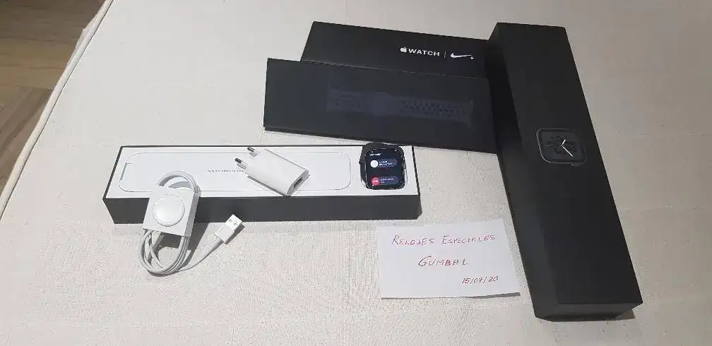 El reloj va con sus correspondiente caja y accesorios (correa, cable y cargador) completamente nuevos sin desprecintar, otra correa ng/amarilla nike que compré a un compañero del foro de reestreno que también adjunto con el reloj y que yo jamás llegue a utilizar y otra correa moowear espectacular canvas en tejido vaquero y color azul que le sienta como un guante y es la única que se a utilizado.