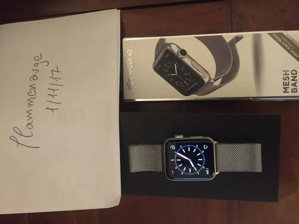 Buenos días, vendo Apple Watch series 2 Nike edition, comprado en julio de 2017 en El Corte Inglés. Es el modelo con gps y con el que puedes practicar natación. Se incluye una correa milanese de la marca XDoria. Su precio serían 310 con envío por correos incluido. Ahora unas fotos.