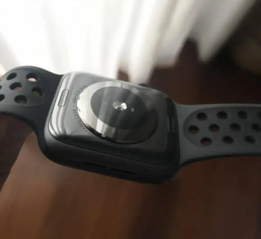 El reloj está perfecto. Yo no le veo marca alguna, (ha sido usado con moderación), tal y como se ve en las fotos.
