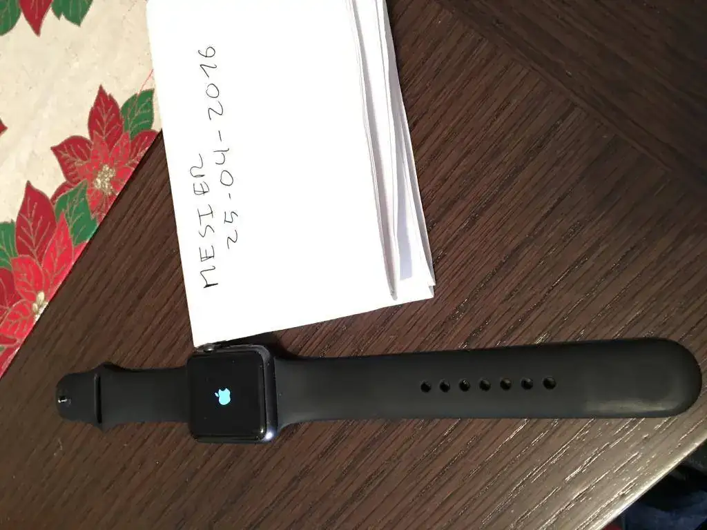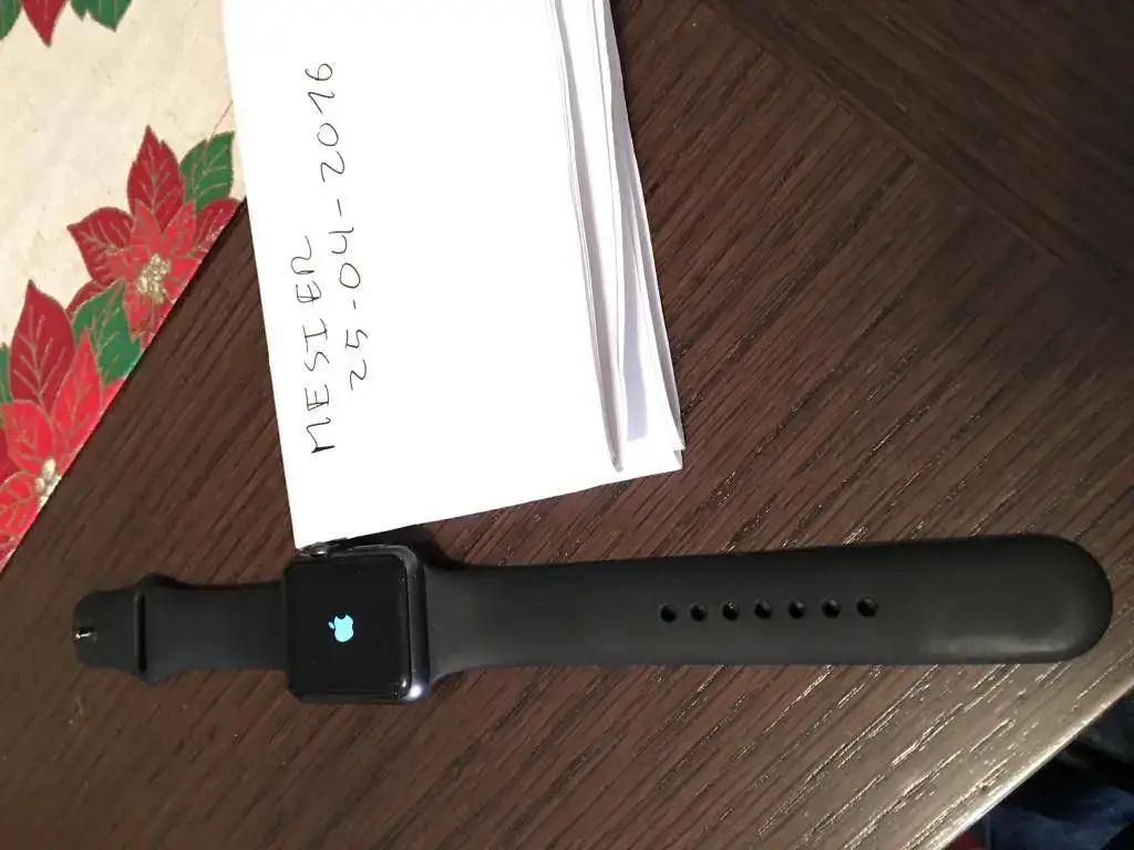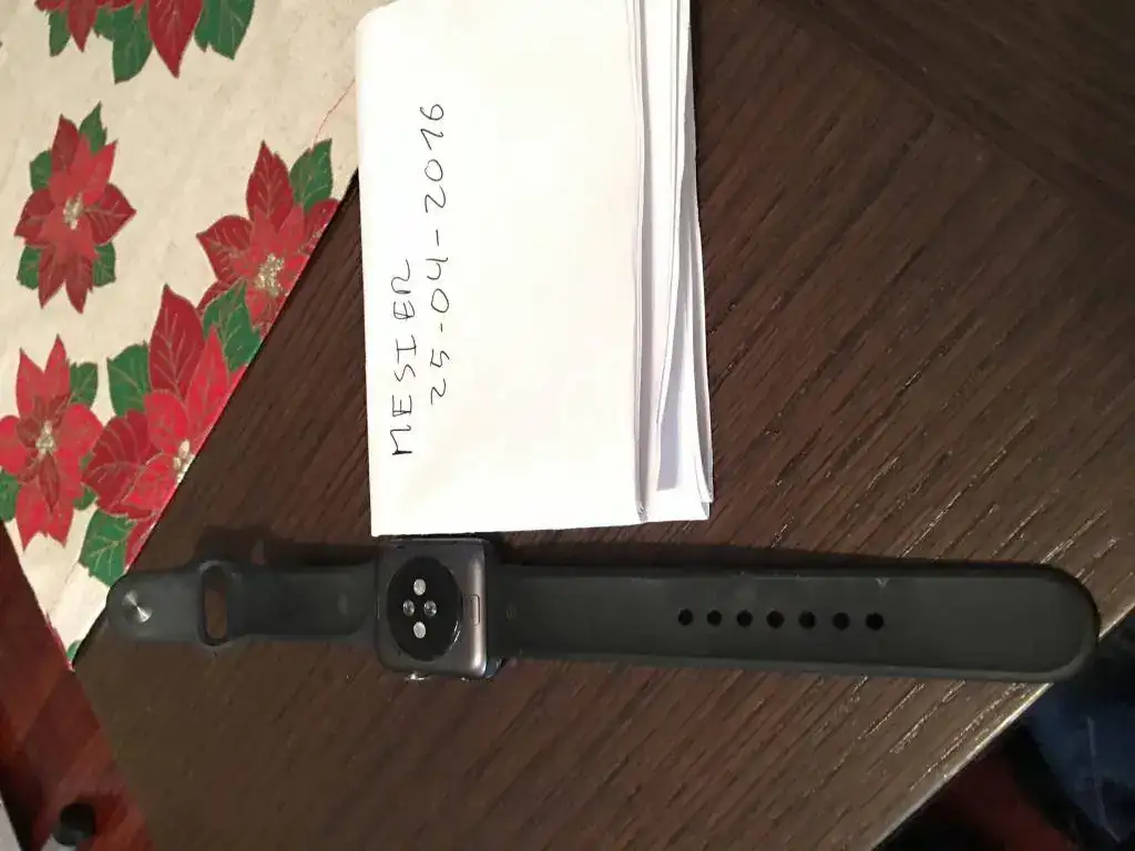 Comprado el 26 de junio de 2015 por mí en apple store española por internet. Ha tenido poco uso ya que rota con más relojes. Tiene una pequeña marca cerca de la esquina inferior izquierda fruto de un golpe contra una mesa; sin perder pintura ni nada. He tratado de retratarlo en las fotos. Por supuesto funciona a la perfección.[/TD]