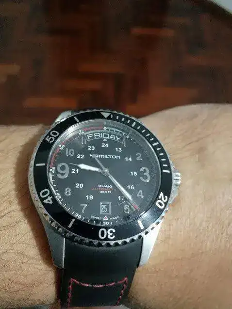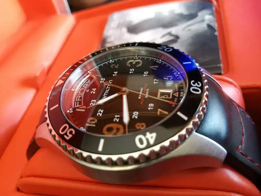 Ayudó a que el reloj está en impecable estado (no tiene ni una sola marca de uso), el vendedor vive a 600 metros de mi casa y acordamos un precio razonable, además de que en mi ciudad tenemos service de Hamilton, por lo que no quise dejar pasar la oportunidad, y aunque siento que el glycine es "más reloj", estoy contento con este pequeñin (que ademas me costó un poco menos), y lo presento pidiendo perdón por las fotos, ya que son mis primeras, tomadas con un celular e intentando controlar los reflejos (notarán que mi inexperiencia no ha conseguido controlar nada).