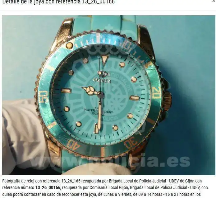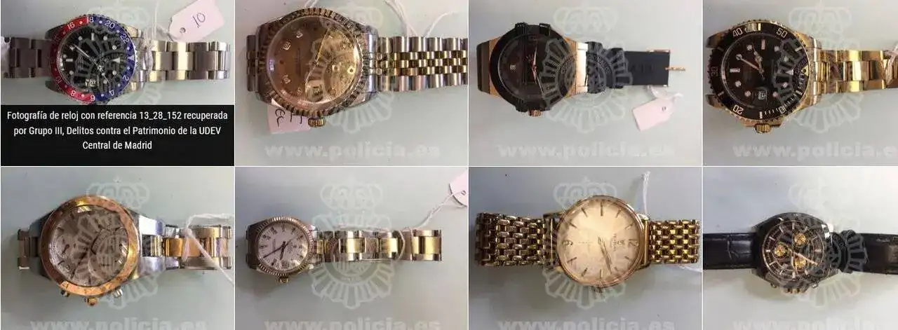 La Policía Nacional mantiene una página web en dónde da noticia de todos los relojes que consigue recuperar en sus operaciones. El propósito de la web es facilitar a sus dueños la posibilidad de identificarlos y recuperarlos, de modo que hay que entender que se trata de relojes robados, aunque eso no se especifica con mucha claridad.
