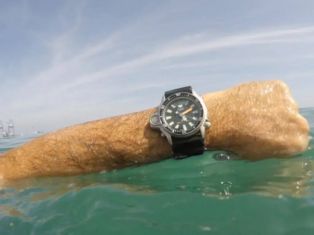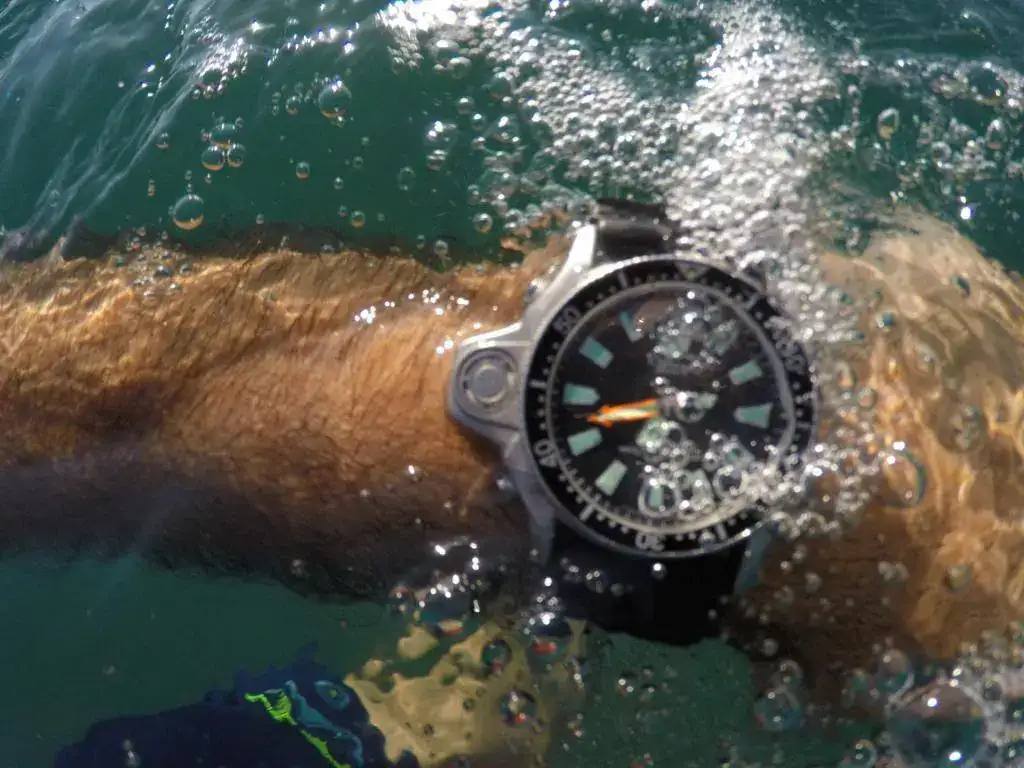 muy contento por haber conseguido este vintage casi NOS y ver que funcione perfectamente en el agua que es donde me gusta usar los relojes...
