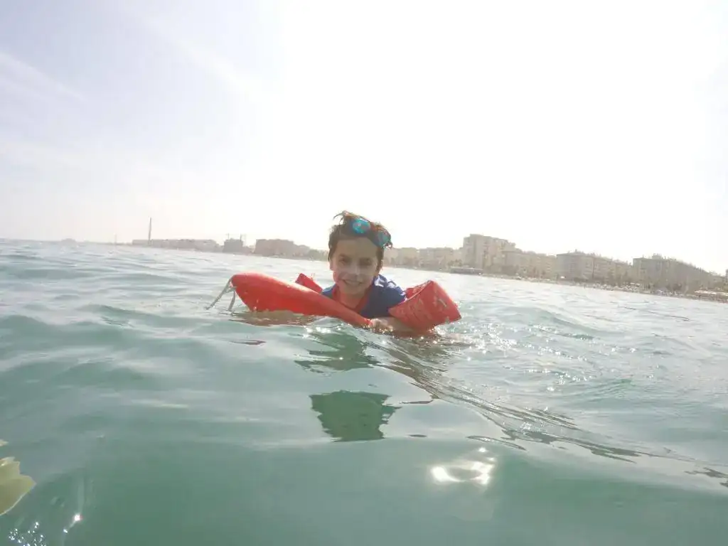 También he ido una vez a a bolla de la canal balizada de la playa con mi peque ...