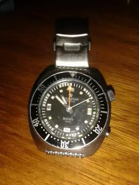 UUU !!! Amigo,... el aquastar benthos 500 tiene una historia riquisima, la marca en si y el modelo benthos 500 poseen un aura de misterio de una epoca donde no habia compus de buceo... el calibre todo... a mi entender es el santo grial de los divers junto con el sandoz typhoon
