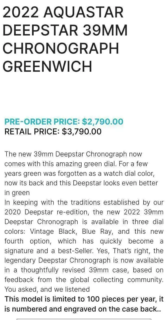 Por tanto, si alguien está pensando en adquirir un Deepstar II (de 37mm) o este reciente Chrono de 39mm, tiene una semana para decidirse.