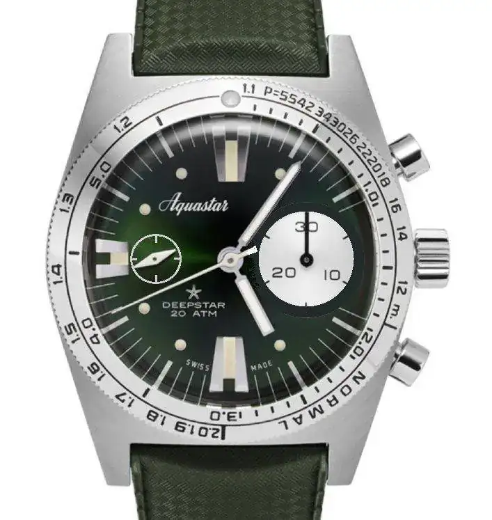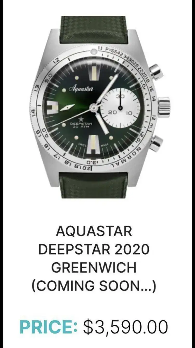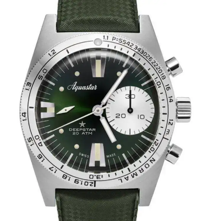 Muy breve, las 300 unidades por color del Aquastar Deepstar 2020 ya se han vendido todos, aunque quedan por entregar los últimos a finales de marzo, y ya están anunciando una nueva versión en edición limitada también a 300 unidades en verde, que tiene un aspecto brutal con su esfera rayos de sol... nueva variante, por lo tanto, del primer y más mítico chrono diver...