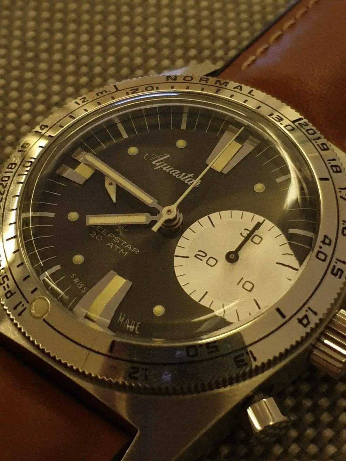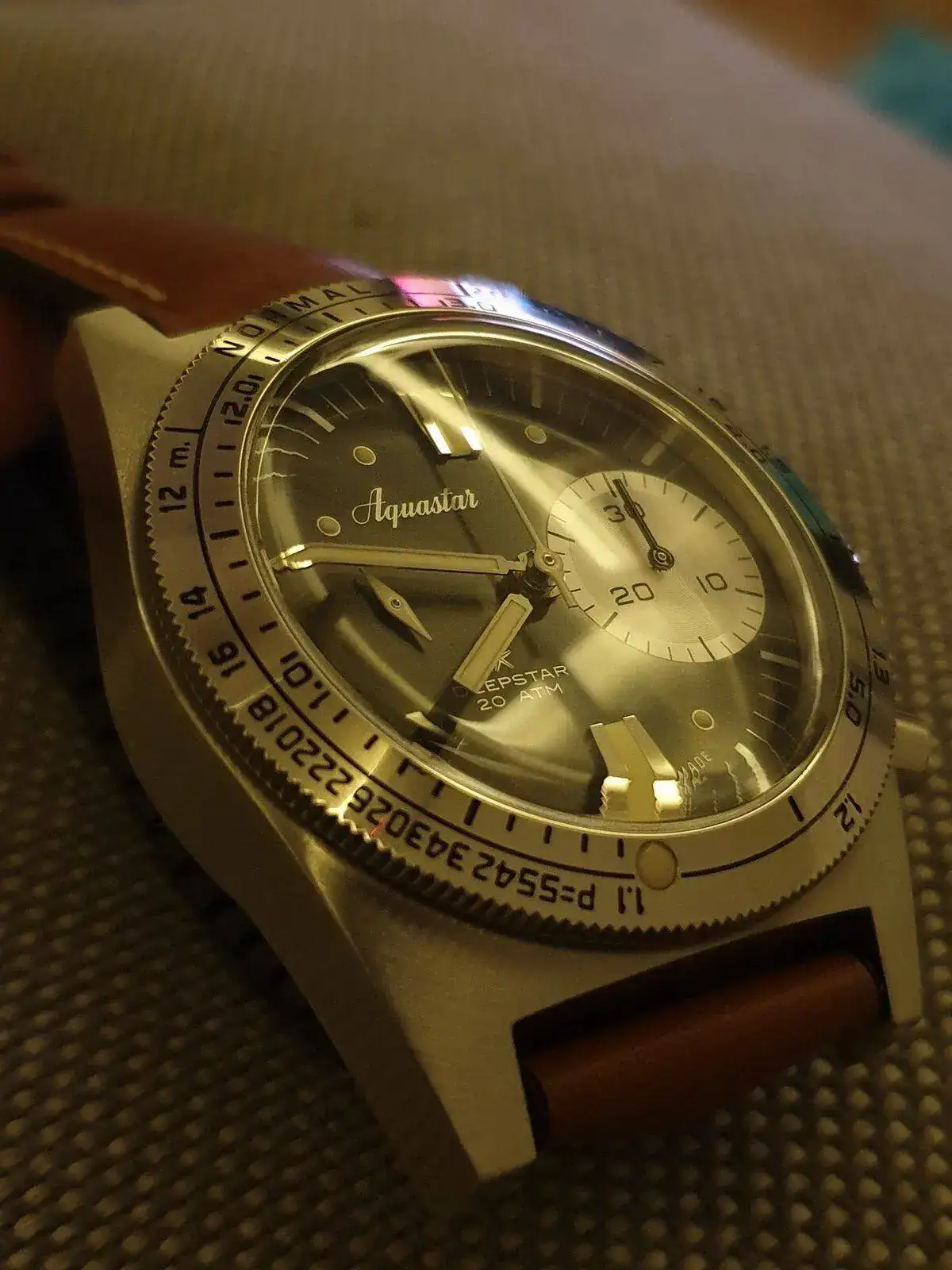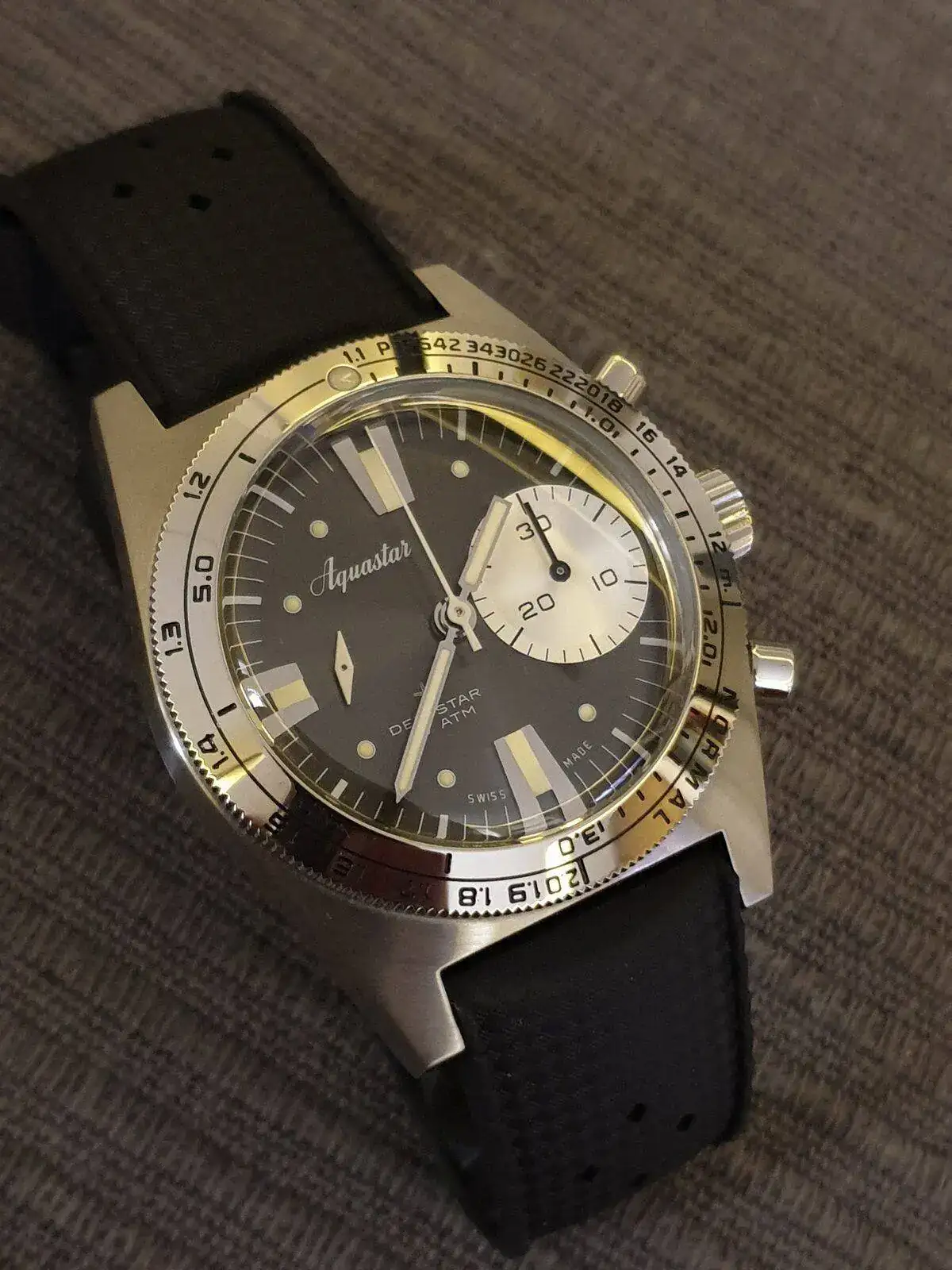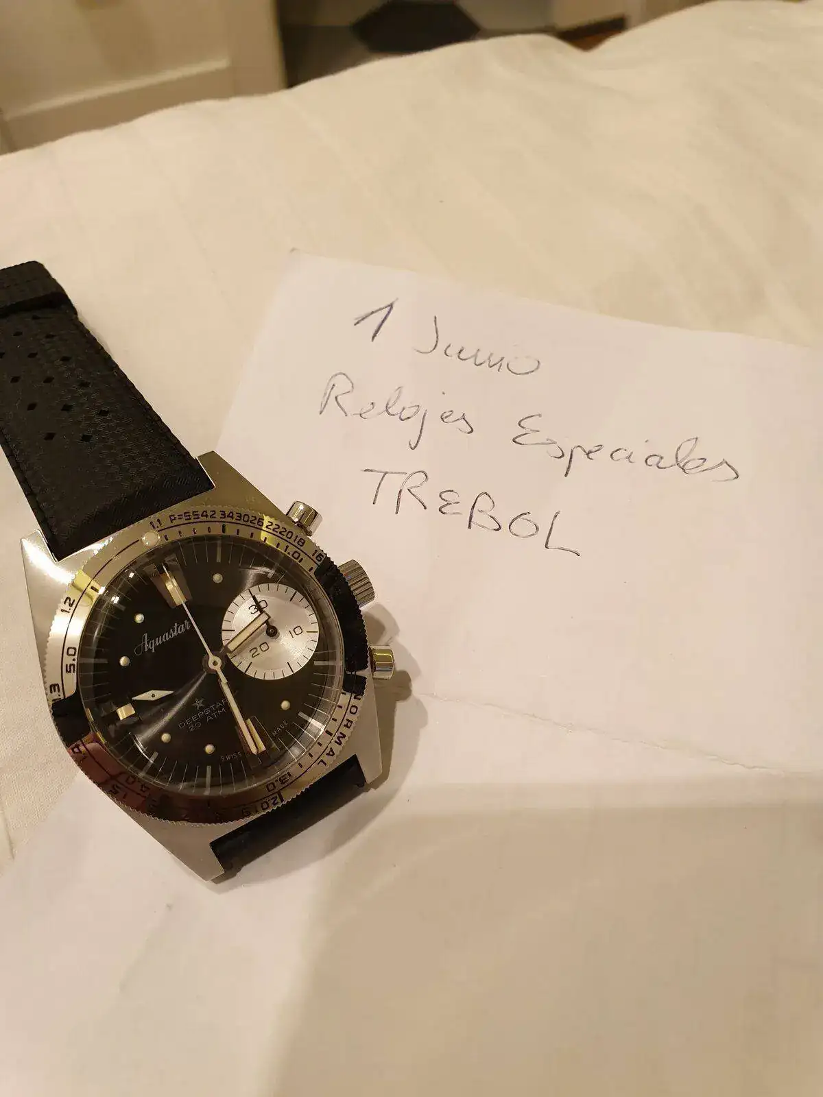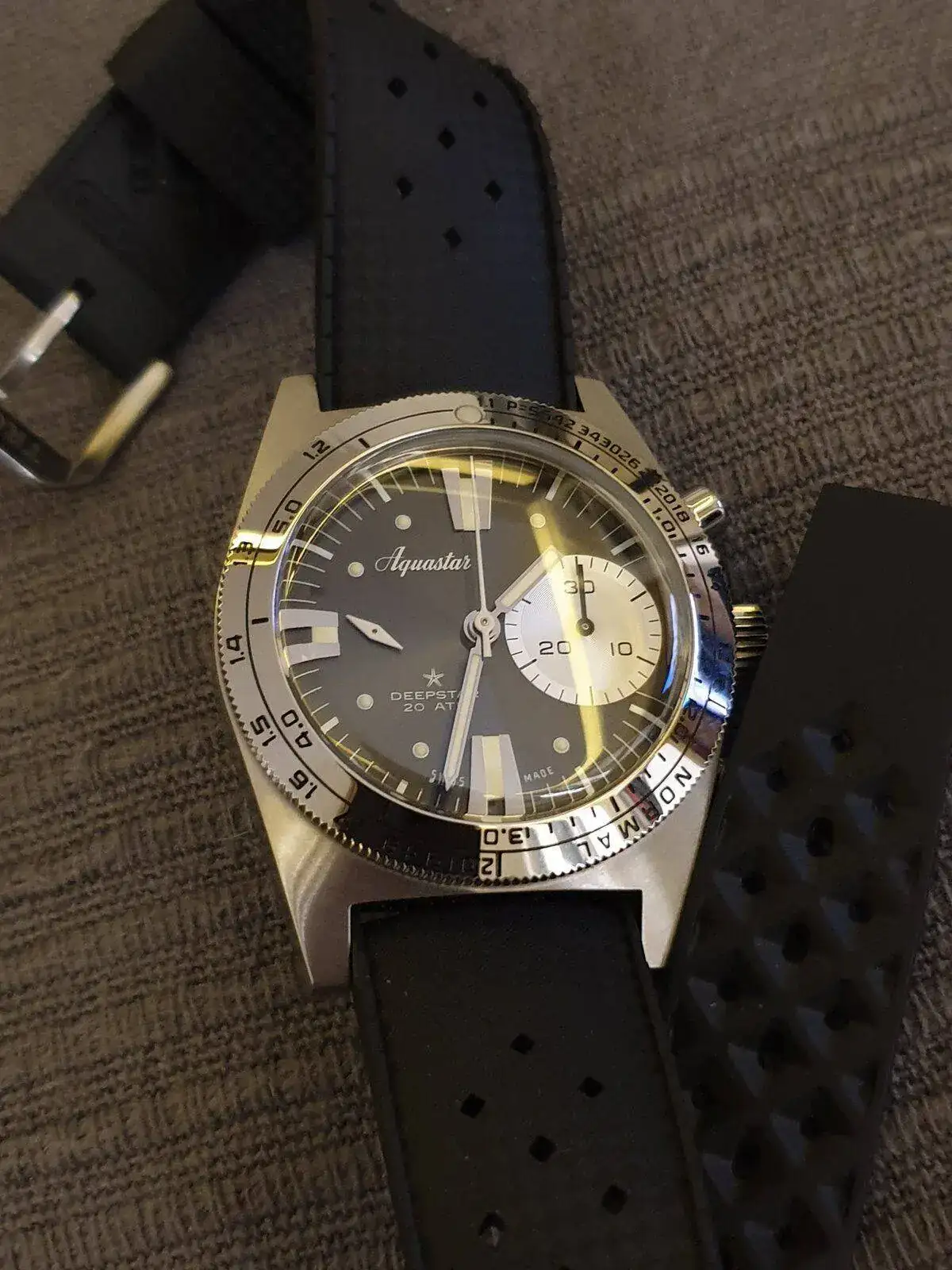 Se trata de la reedición del mítico reloj de buceo limitada a 300 unidades por cada color (gris, negro, azul y verde). El reloj está de reeestreno, no tiene ninguna marca ni en caja, cristal ni bisel. Ninguna. Ni rayitas.