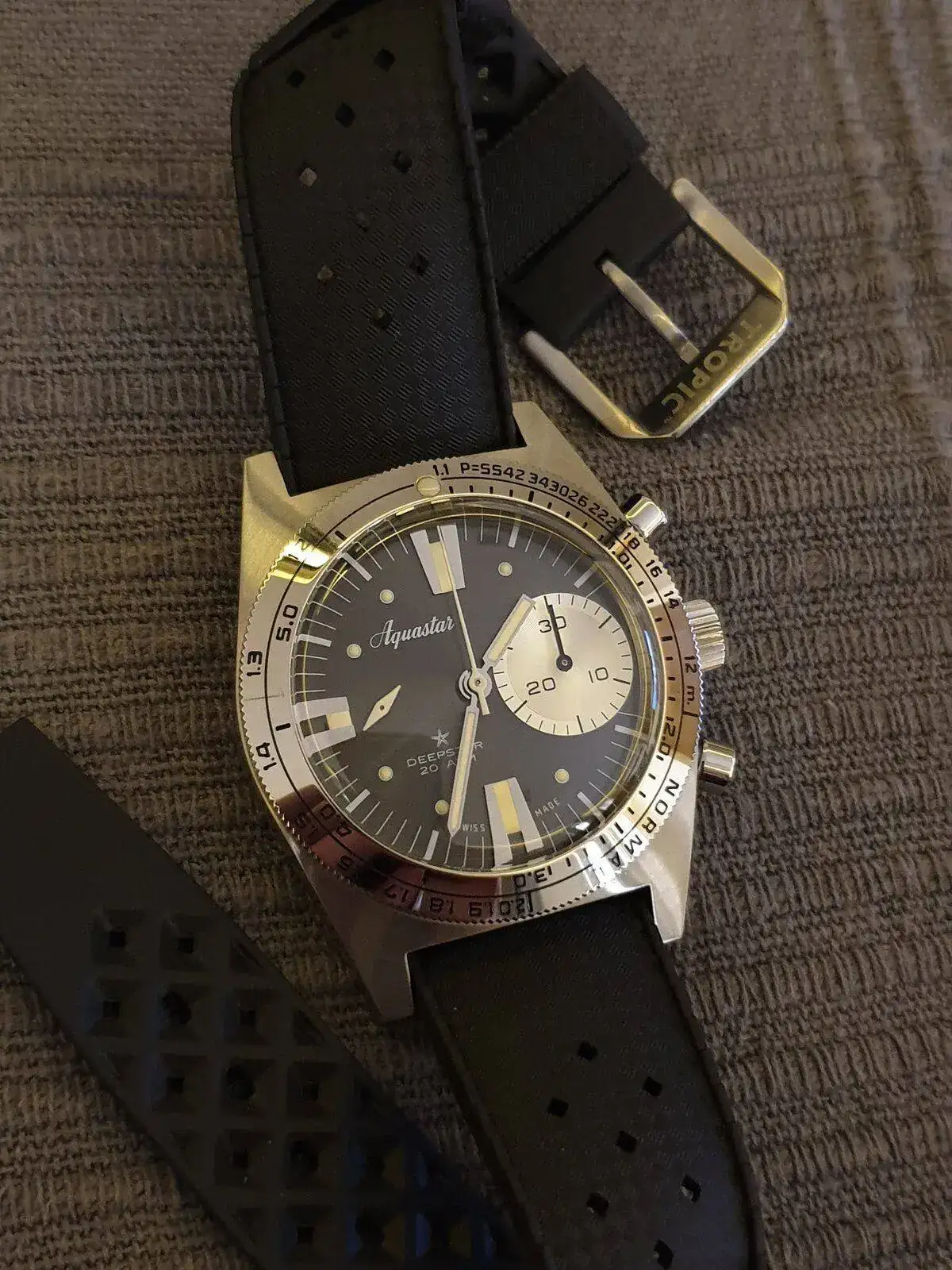Comentar que trae toda su dotación original de caja y documentación y se entrega con su Tropic original en gris. Como sabéis este reloj salió a la venta en pre-order que venía a costar 2.950€ y luego, antes de que se agotasen, pasaron a 3.300€.