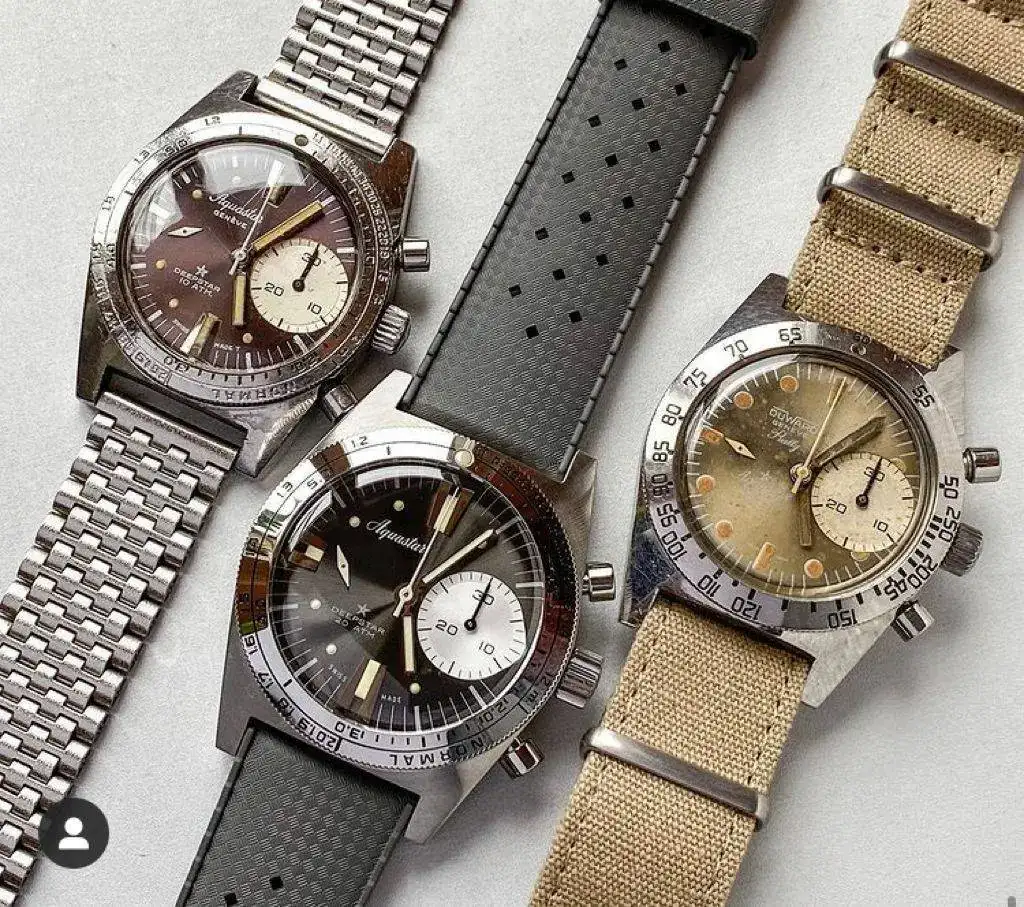 El Aquastar Deepstar es el PRIMER Chrono Diver de la historia, año 1965, reloj predilecto del equipo de Jaques Cousteau, pulsadores accionables hasta 100m hace 55 años... casi nada.