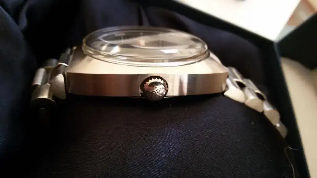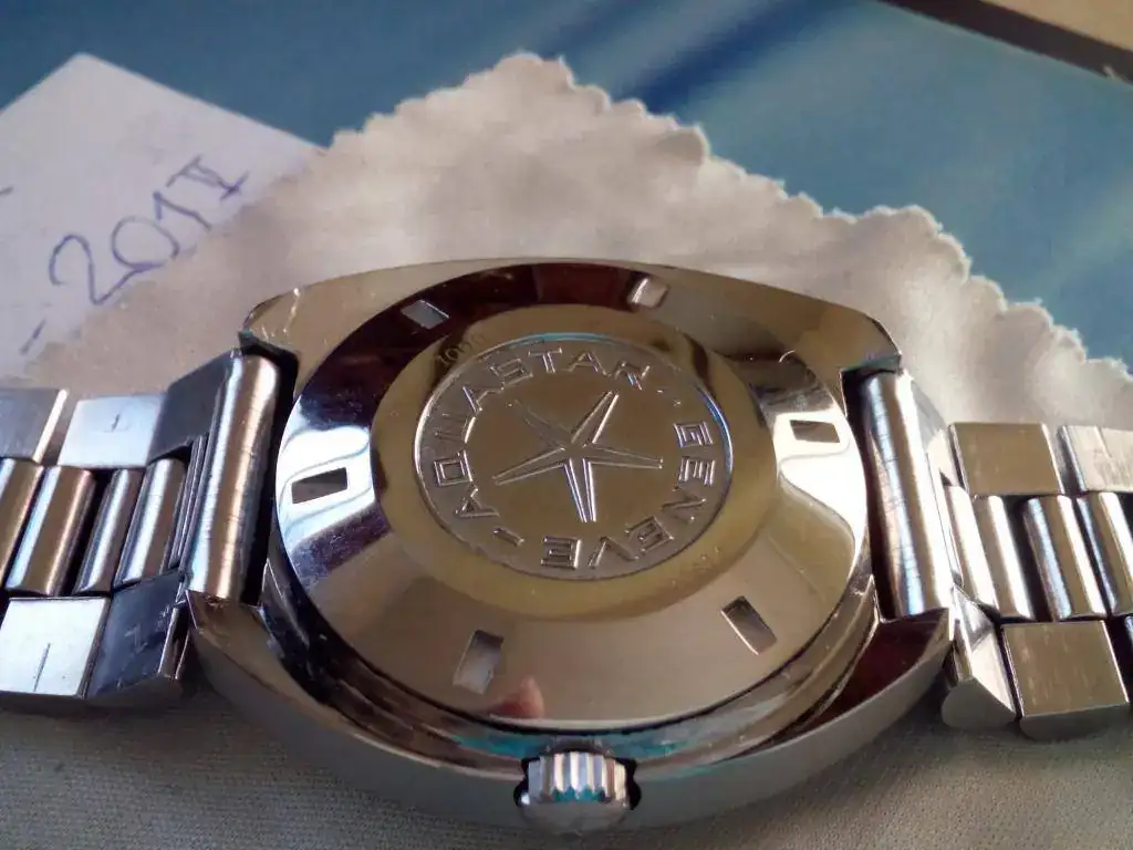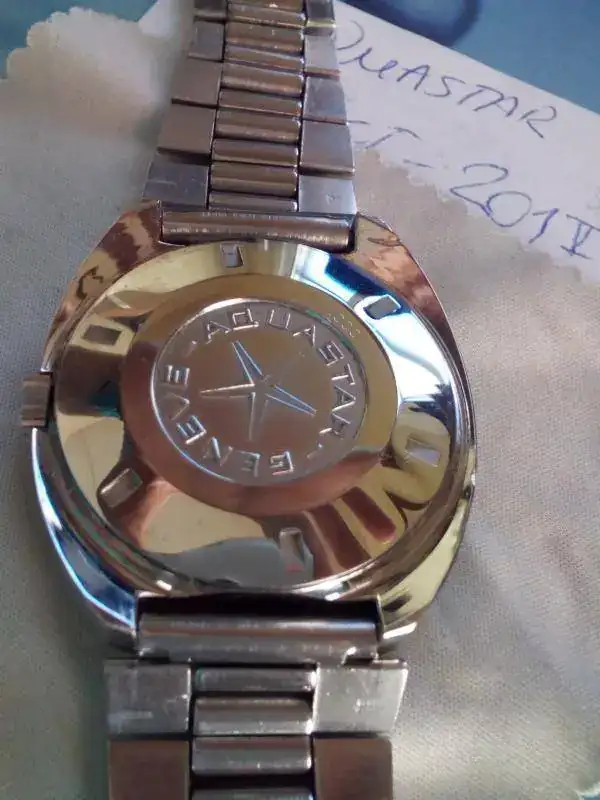 Tiene ligeras marcas de la junta del fondo roscado que con el paso del tiempo se ha degradado. Armis originario Aquastar y caja de acero en perfecto estado.