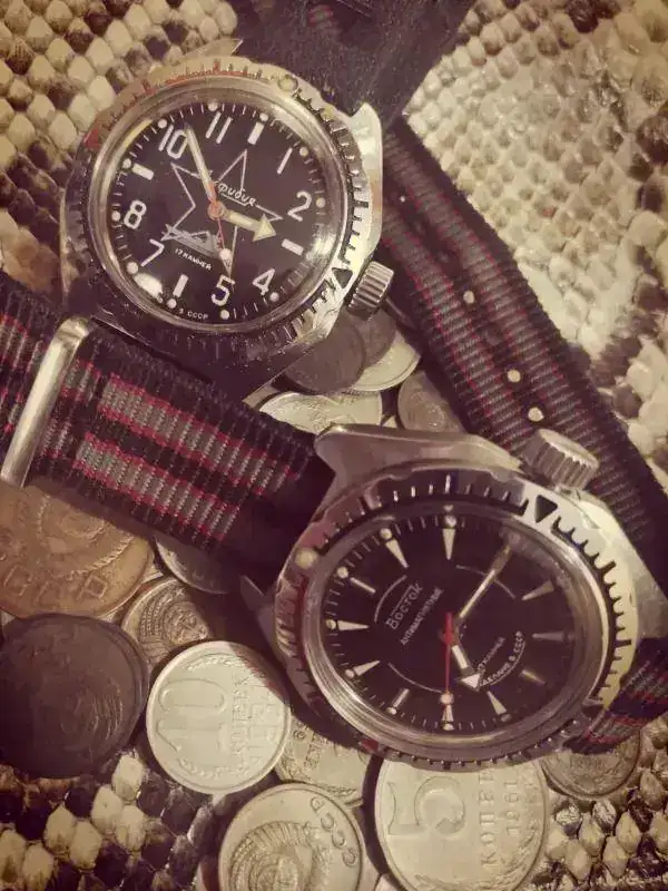 Voitglander BESSA L con un MOLNIJA al que se le ha puesto un d ial fantasia , este reloj lleva un calibre con microajuste derivados de los ROLEX-COTEBERT