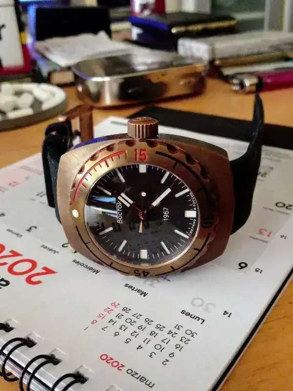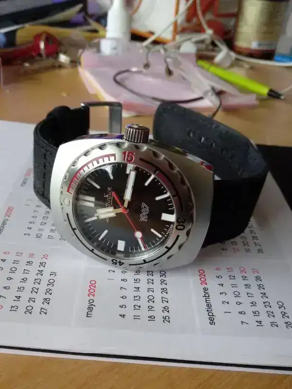 Bueno pues va de camaras Analogicas y relojes Rusos , casi de la misma epoca unos y otras .Un Amphibia aun no terminado pues el calendario es a las 3 y el dial tiene la ventana del datario a las 6 , estoy esperando una rueda de calendario en rojo .![]()