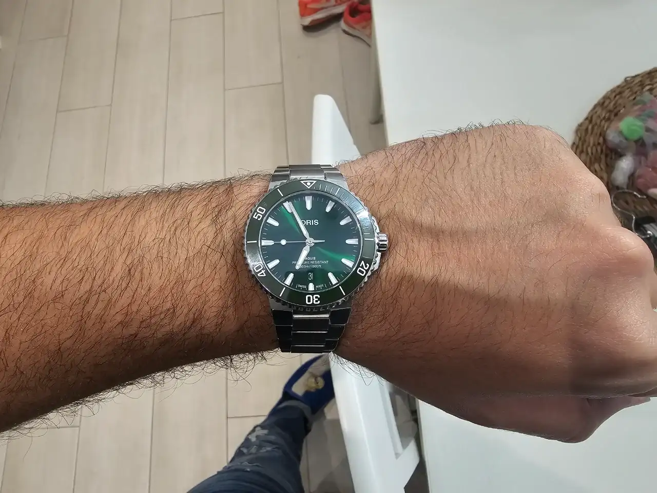 Creo que has acertado de lleno, compañero. El Oris Aquis tiene el verde más bonito de los relojes que he visto, y los reflejos al darle la luz son increíbles. Gran resistencia al agua, buen calibre, lug to lug contenido, fecha a las 6 y un buen brazalete, aunque los eslabones laterales pulidos son su punto débil. Trasera vista, extensión de buceo.... Creo que no me dejo nada, jeje. No recuerdo si el mío es el de 39,5 o el de 41, pero también escogí el calibre Sellita por la tremenda diferencia de precio con el manufactura, y el tono de verde no era exactamente el mismo.