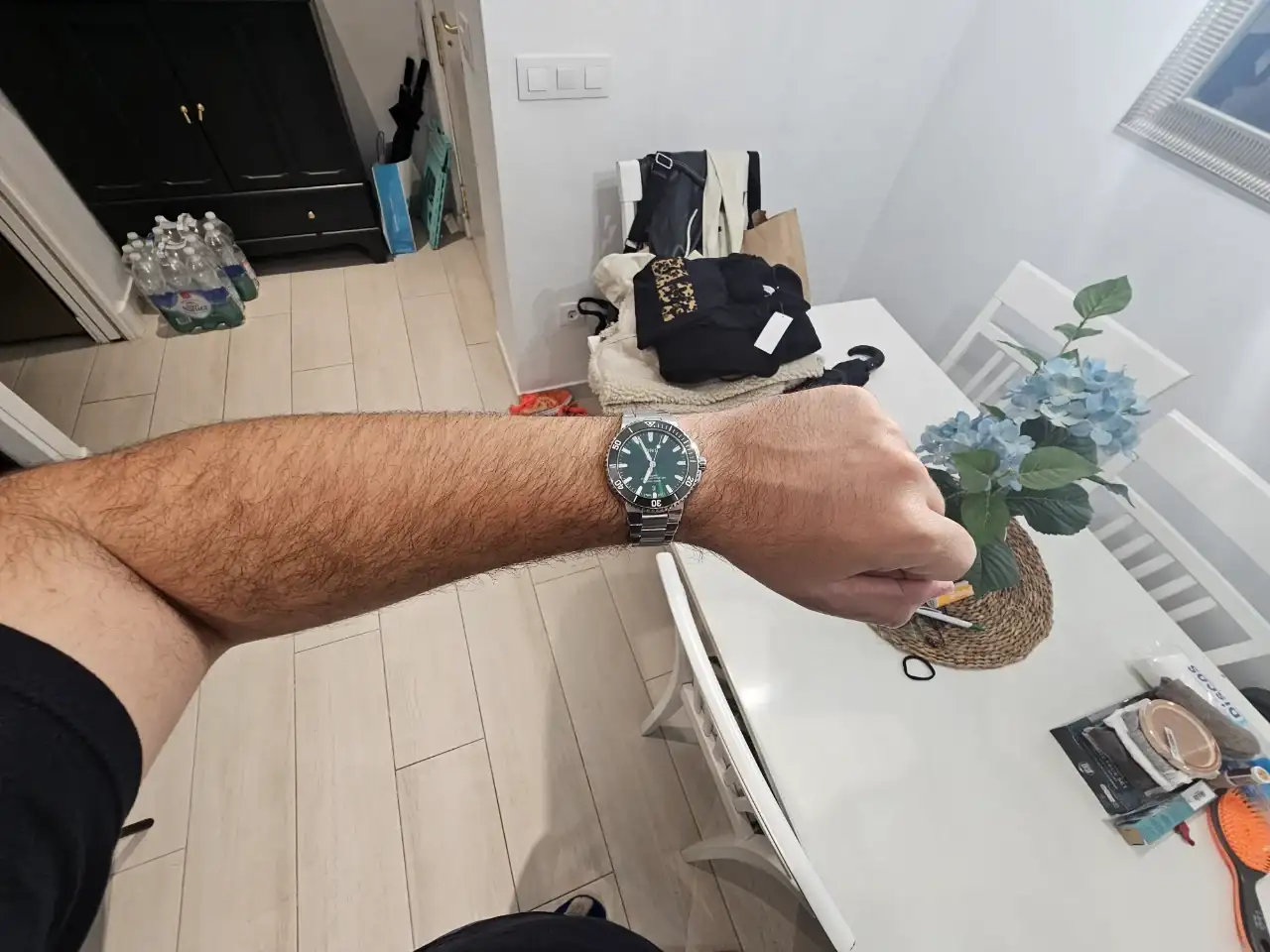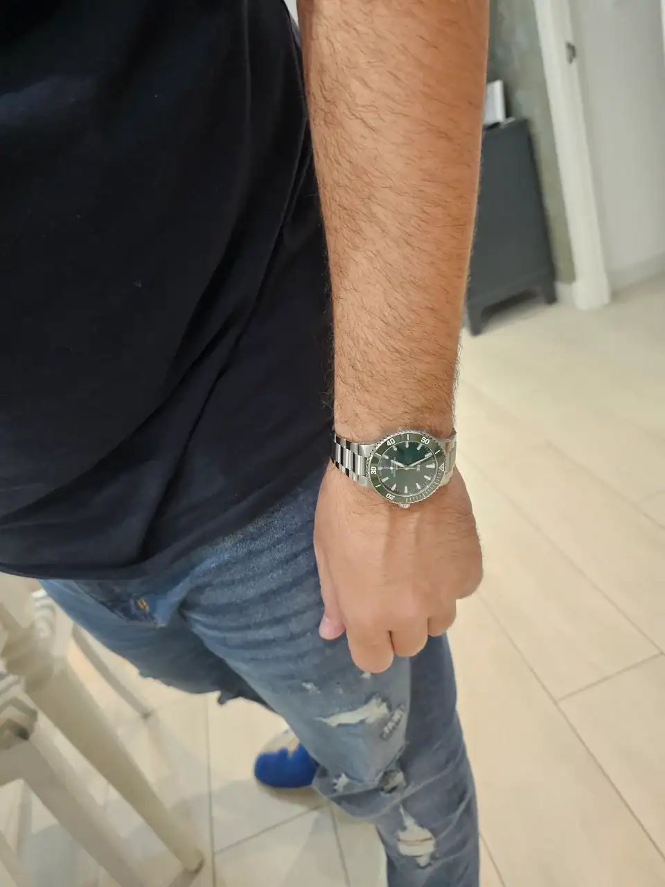 Un reloj muy bonito, creo que has acertado en 41,5, te queda perfecto. Lo vas a disfrutar mucho sobre todo en verano, con los rayos solares, un espectáculo ese verde.