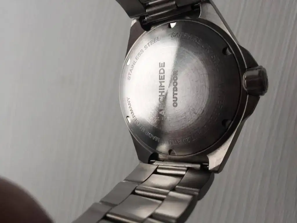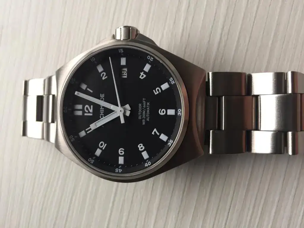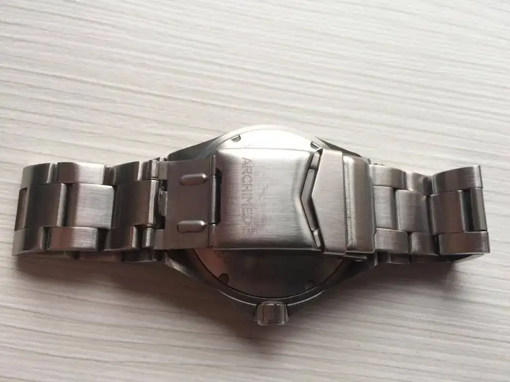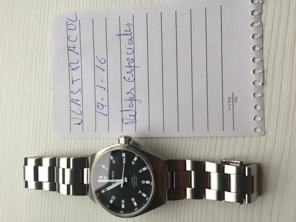 Buenos días a todos/as,saco para venta este Archimede Outdoor.Su estado es usado con mínimas marcas de uso(apenas unos leves arañazos en el cierre del brazalete y microarañazos en el resto)no tiene golpes y el cristal esta impoluto.El reloj va tal cual(sin caja,documentacion ni eslabones sobrantes del brazalete,está ajustado para 17,5 pero con él microajuste llega hasta los 18cm)bueno ahora las fotos,un cordial saludo y gracias al foro por ceder el espacio.