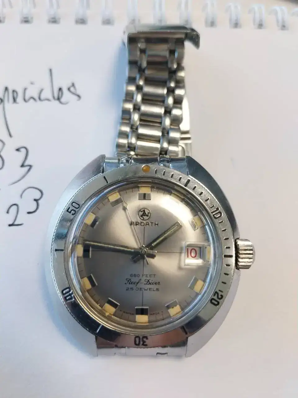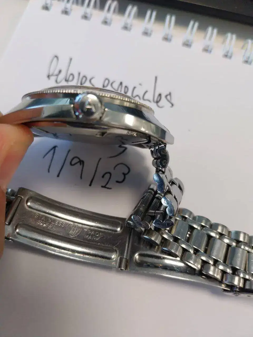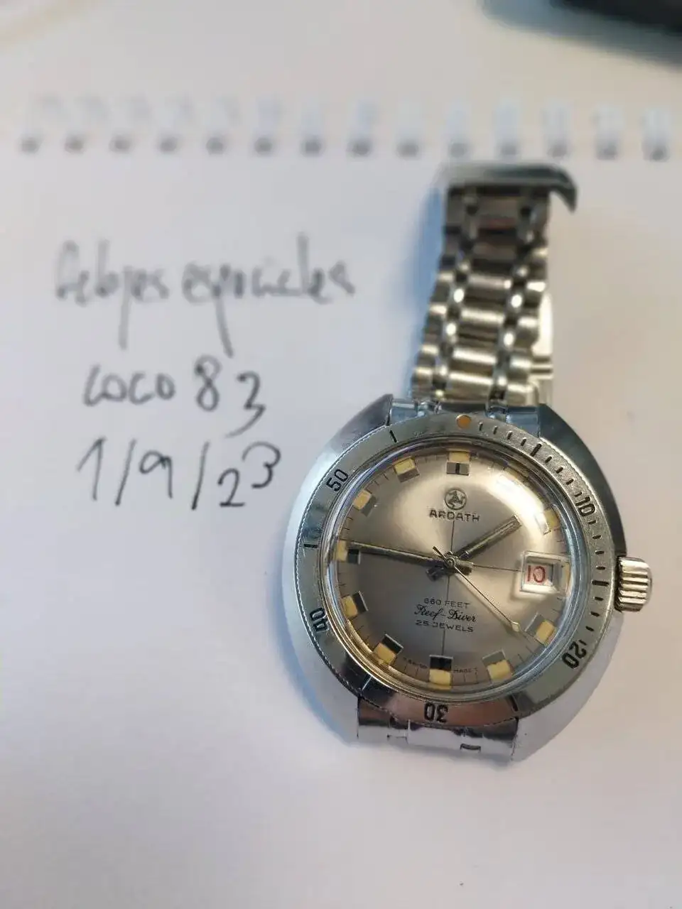 El reloj funciona perfectamente, recientemente revisado, con una magnifica ETA. Esfera preciosa y poco vista plateada con el tritio en perfecto estado. La caja (en forma de tonel, igual que la bulova devil diver) se encuentra en un magnifico estado y con brazalete de la época y bastante largo. Bisel unidireccional en que mantiene la impresión de los índices en perfecto estado. Plexi original y si arañazos ni grietas.
