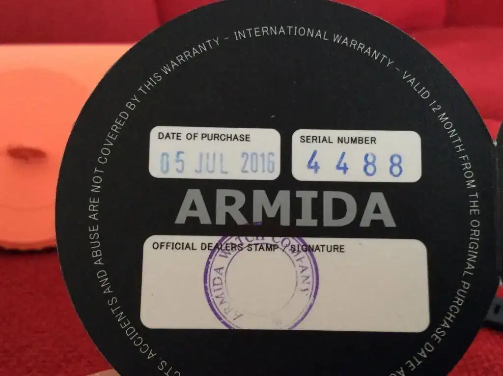 El reloj está comprado en Julio del 2016 con lo que técnicamente le quedan 23 días de garantía, pero vamos.... mejor decir que no tiene. Todavía conserva el plástico en la parte trasera, con lo que lo que se ve es algo de suciedad. Prefiero no quitar el plástico y así su nuevo dueño se puede dar el gusto de hacerlo.