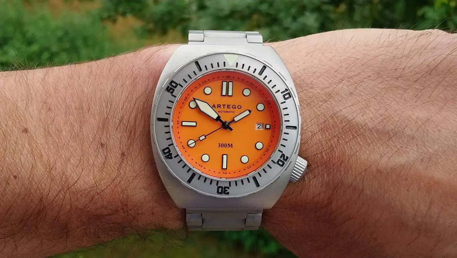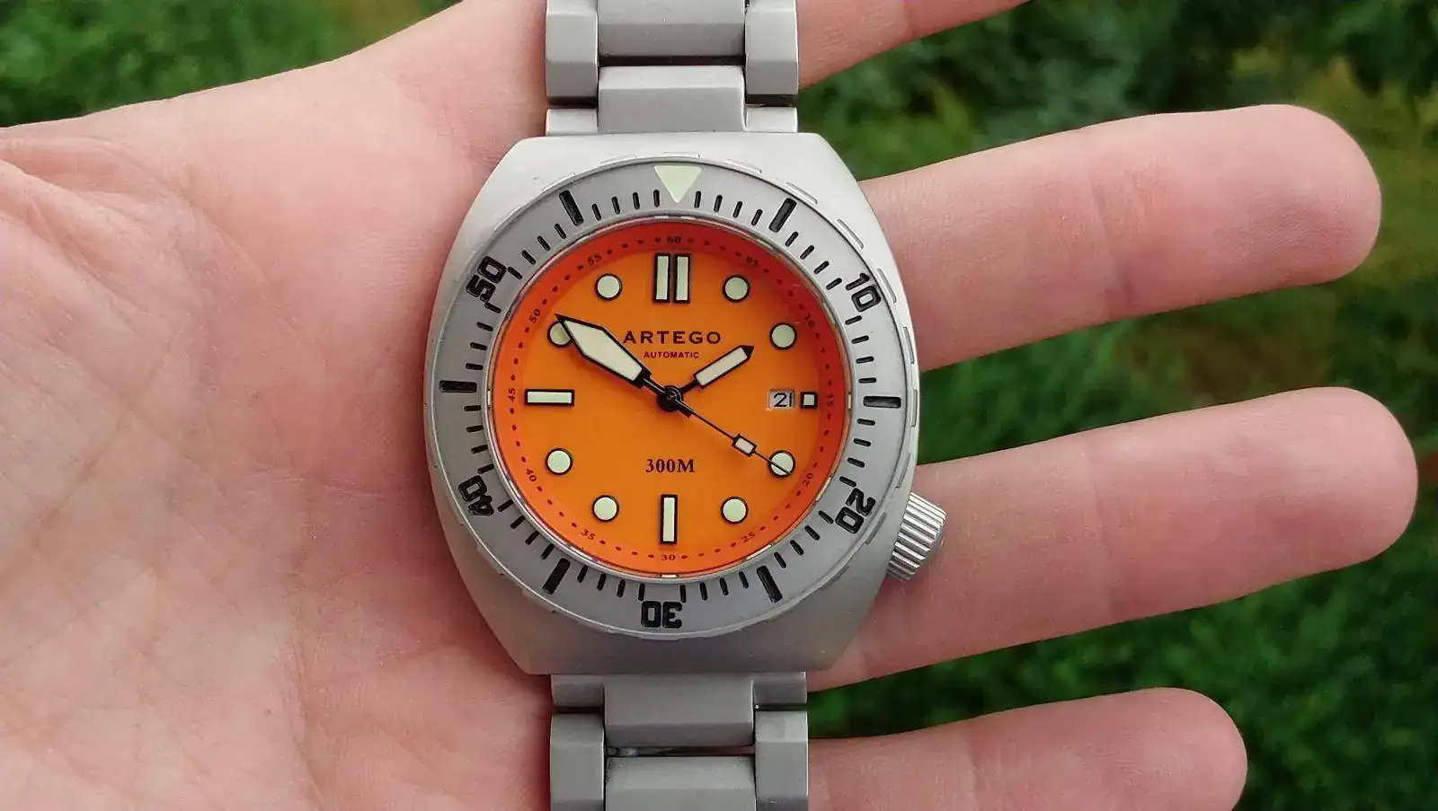 Es un autentico diver, bisel unidireccional de 120 clicks, corona roscada y grabada, muy buen lumen, armis solido con eslabones atornillados, 300m WR, dial cerámico.