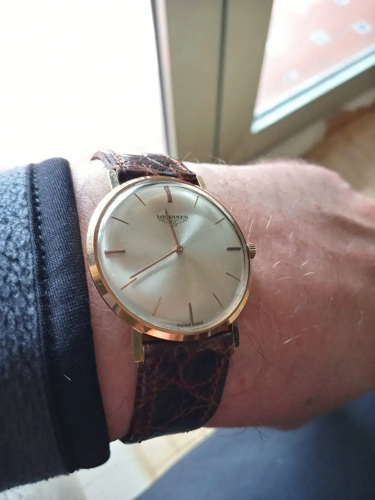 Yo conservo impoluto el reloj q me regaló mi tio para la primera comunión (1967). Resulta q mi madre con buen criterio pensó que era un reloj demasiado elegante y delicado para un niño de 8 años y lo guardó sin que lo usara nadie. Un buen día en 1996 aprox se acordó de él y me lo entregó para mi sorpresa y disfrute. Sale en ocasiones especiales. 35mm. Un saludo y q monos eramos todos en la tierna infancia.
