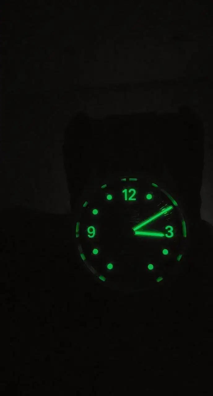 Esfera: Negra, segundero a las 6 e indices y agujas luminova.