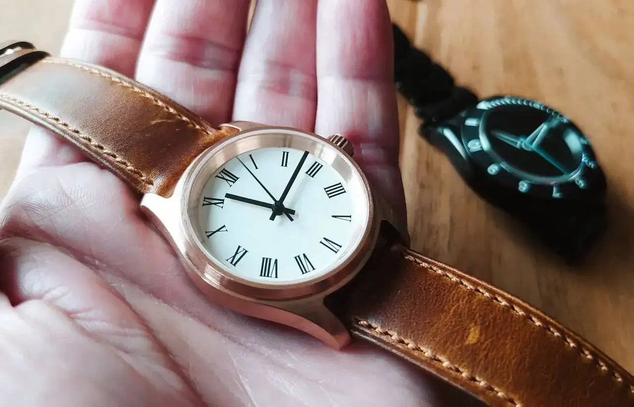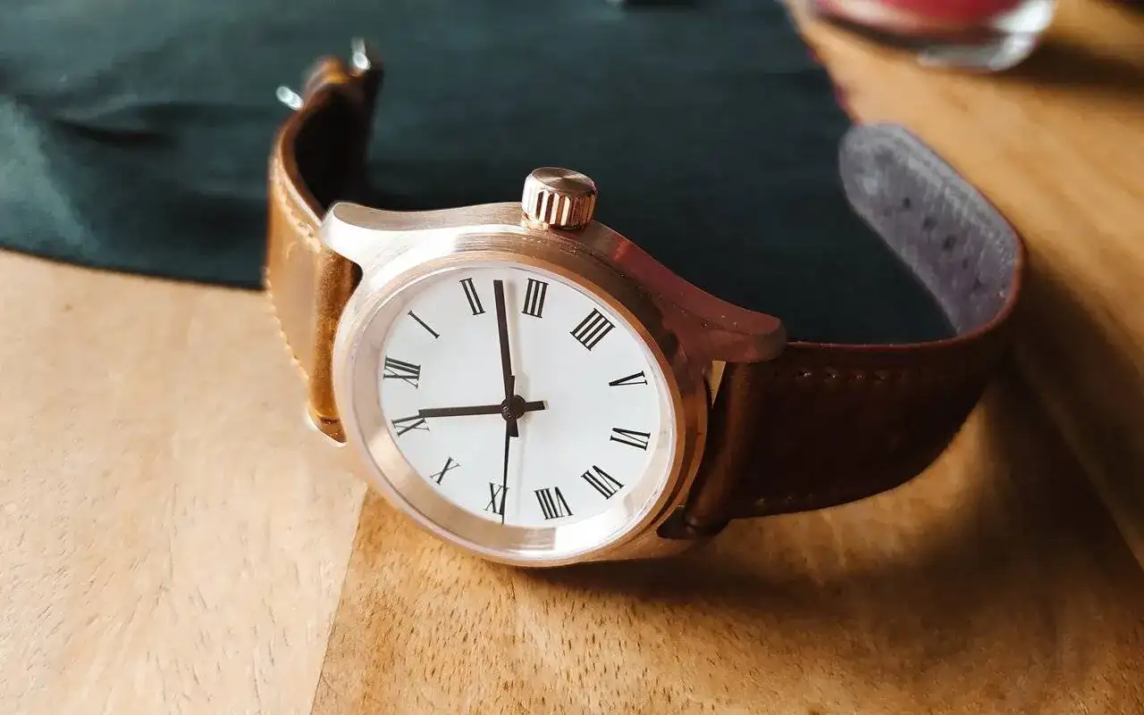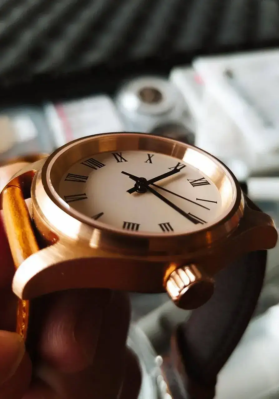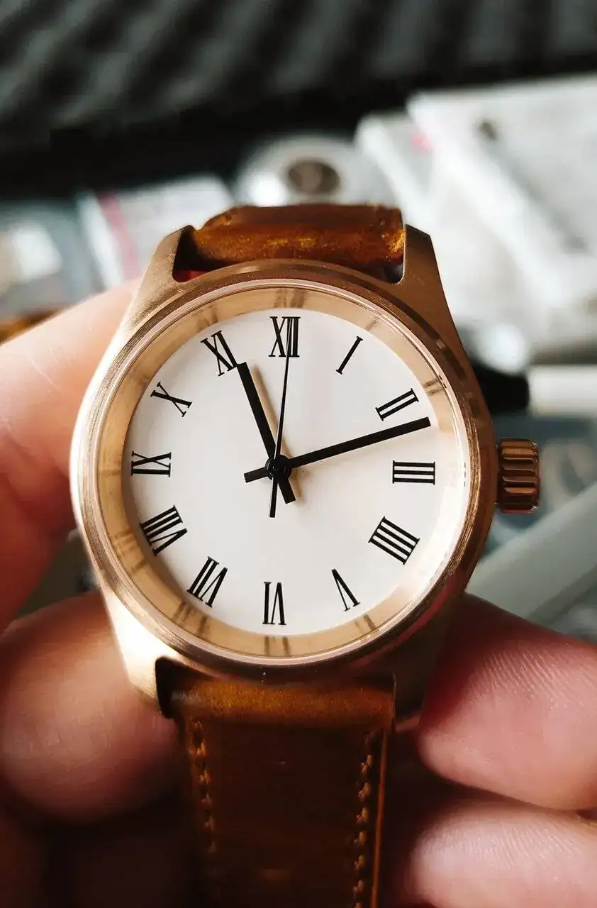 Sí, estoy muy contento con como han quedado las agujas. Muchas gracias por tus palabras.Se me había escapado. Qué pasada. Espero en algún momento atreverme a hacer algo parecido. Además del acierto de esa transición que apuntas entre el dial blanco y ese tono de bronce, me ha dado por fijarme en la decisión que tomaste con las agujas. Teniendo en cuenta que lo habitual con números romanos son las manecillas breguet o tipo hoja, tu elección de las de bastón enmarcando más ajustadamente los dígitos (que en los Datejust o algún Longines en que las he visto, pero con la de horas más corta) me parece un acierto de diseño que le da un plus de armonía a un conjunto ya muy equilibrado y elegante. Enhorabuena.