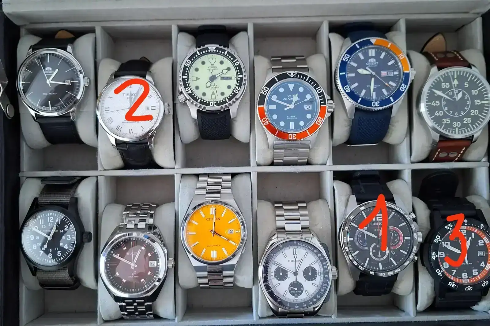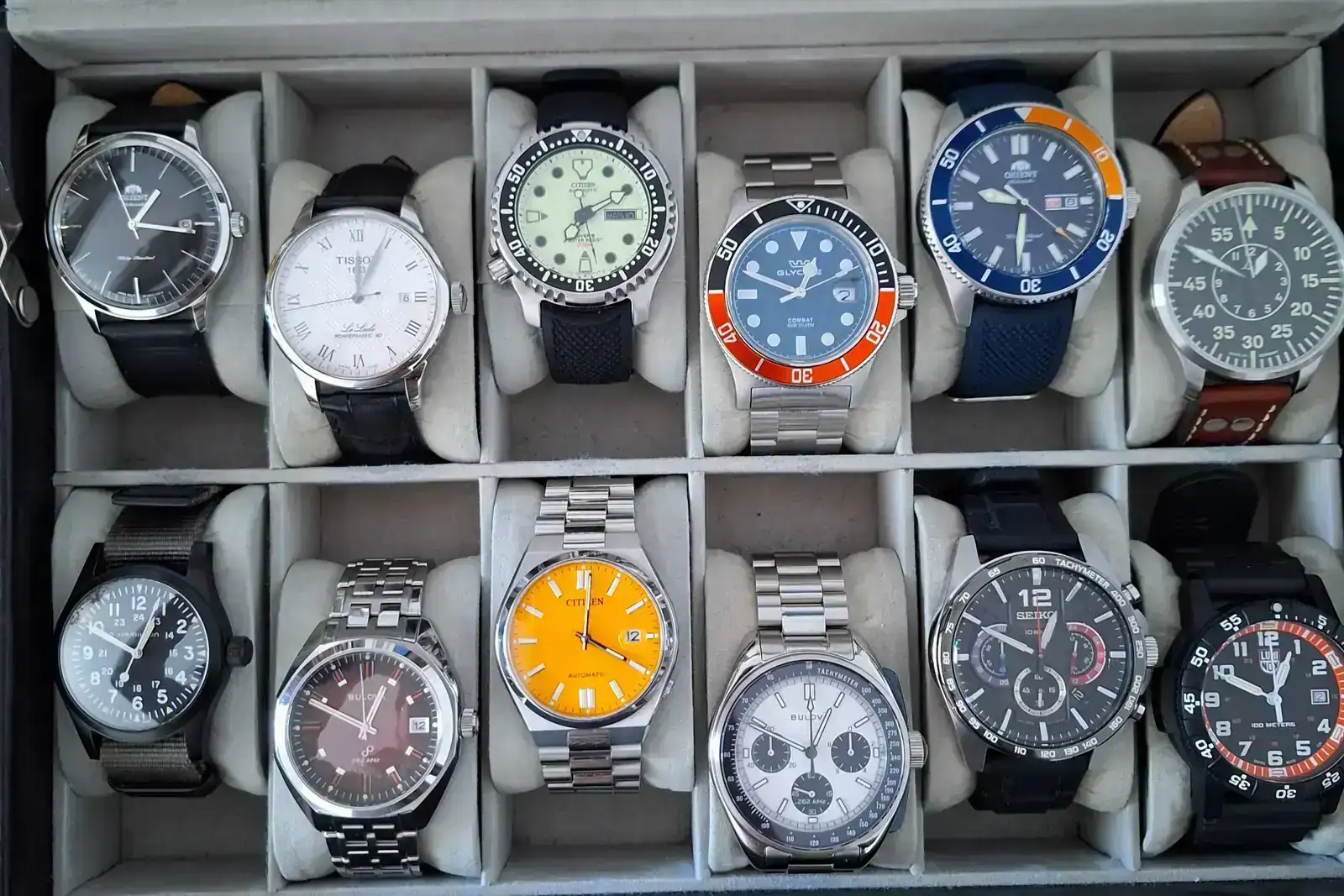 Os pongo foto de mi colección actual!!! A parte tengo un gshock en azul tiffanys!!! El otro día lei un hilo sobre las fases del coleccionismo de relojes. Creo que he entrado en la fase en la que me encuentro atascado. No se que quitar ni que añadir. Tengo mis ideas, quizas el seiko cronografo cambiarlo por un seiko speedtimer, el orient kano por un seiko tortuga o añadir algún reloj de campo estilo bulova hack o algún pilot como el nuevo de glycine.