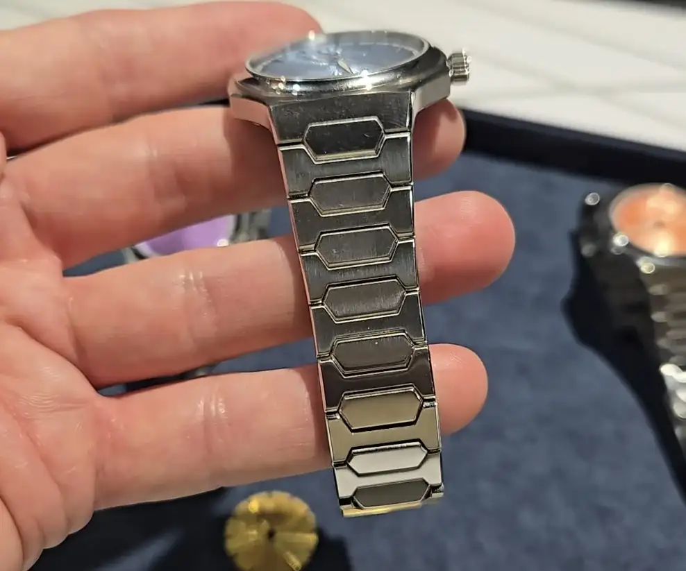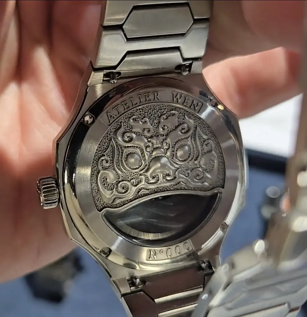 En cuanto al dial hay que decir que es un esmalte hammered que llaman. Los acabados sobre el papel son los que siguen: Los índices son diamantes de laboratorio, el movimiento tiene anglage a máquina, y los caracteres chinos están hechos a láser, por último también parece que tiene black polishing en algunas partes el movimiento.