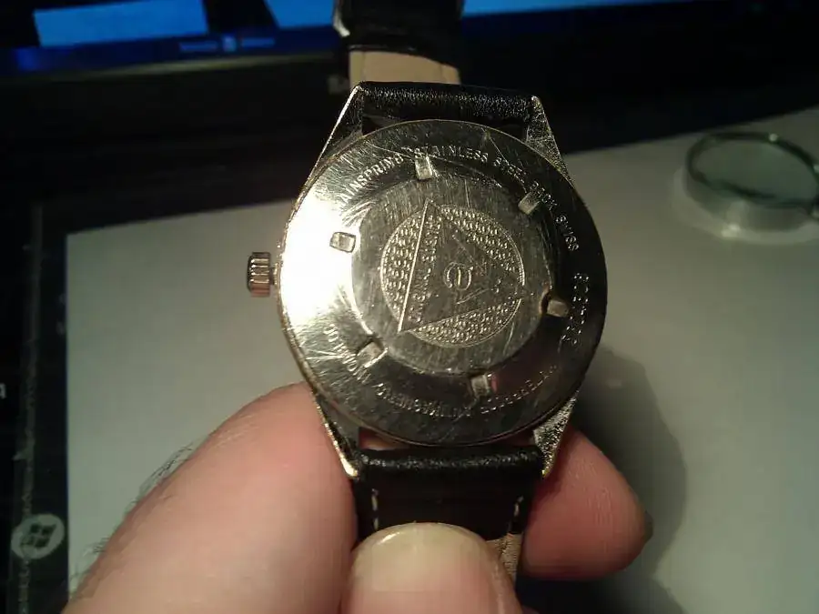 Se trata de un reloj grande para la época (años 60), con 38 mm de diámetro sin corona.
