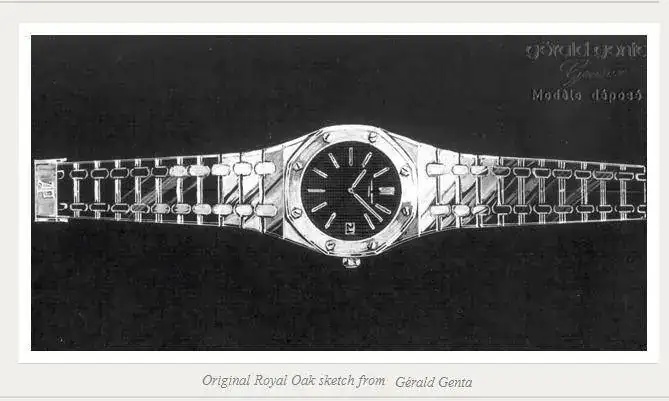 1971 Audemars Piget, manufactura de relojes mecánicos, necesitaba nuevas ideas, pues la industria estaba afectada por la moda de los relojes de cuarzo. Entonces George Golay, para el momento director de la casa, hizo una llamada telefónica a Gérald Genta invitándolo a desarrollar con urgencia un reloj deportivo, para toda ocasión y además con los acabados más hermosos jamás vistos en un nuevo metal.Gental tuvo solo una noche para realizar el diseño. Temprano en la mañana dibujó a la perfección su primera idea y cada detalle de lo que se convertiría en el Royal Oak, un reloj deportivo de lujo, totalmente en acero, algo nunca visto. Diseño que hasta ahora se mantiene si muchas alteraciones.El espíritu independiente y aventurero de Audemars Piguet junto a la visión de Gérald dieron inicio a la transformación de la industria internacional de la relojería cambiando no solo la historia de la manufactura, sino que también modificó para siempre los parámetros estéticos que regían la Alta relojería suiza.