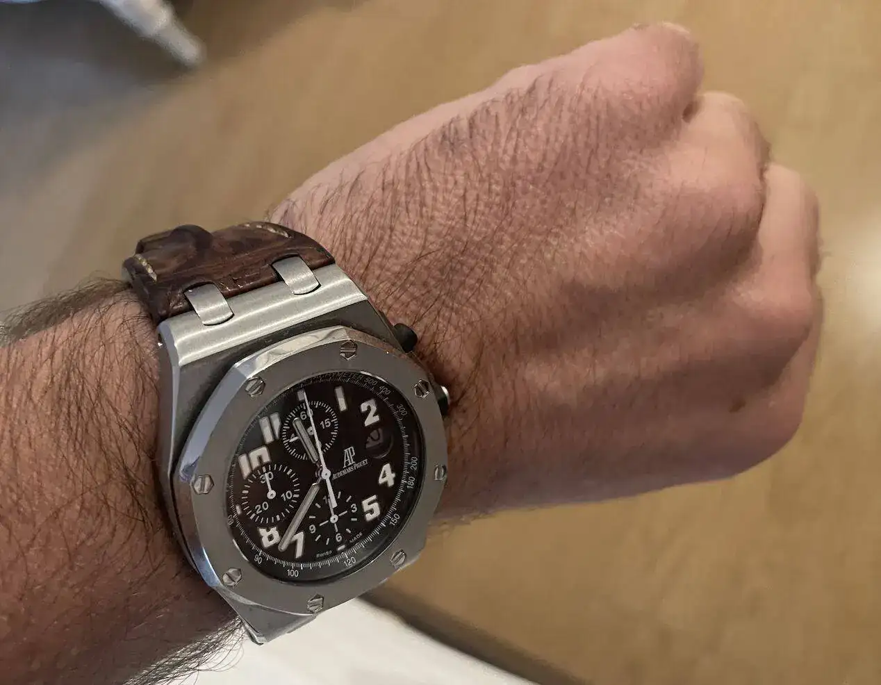 Pues tengo la misma muñeca que tu y suelo privarme de según que relojes... Supongo que será tema ángulo de la foto. Entonces magnífico! Me encantan los relojes contundentes.No te creas que es muy grande. Son 42mm muy equilibrados. Yo tengo una muñeca de 16,5 y va perfecto! Está el modelo de 44 y ese me parece excesivo.