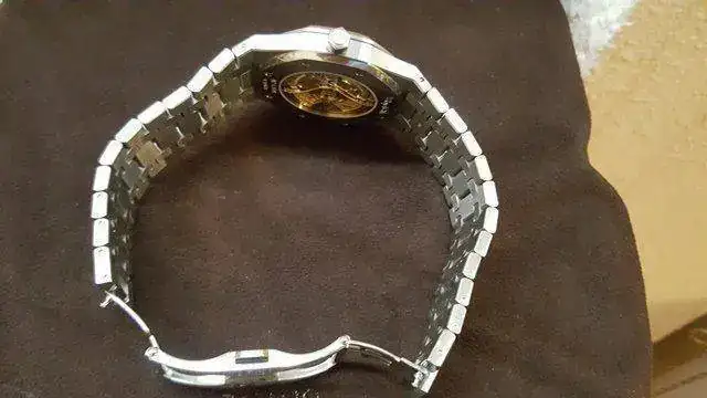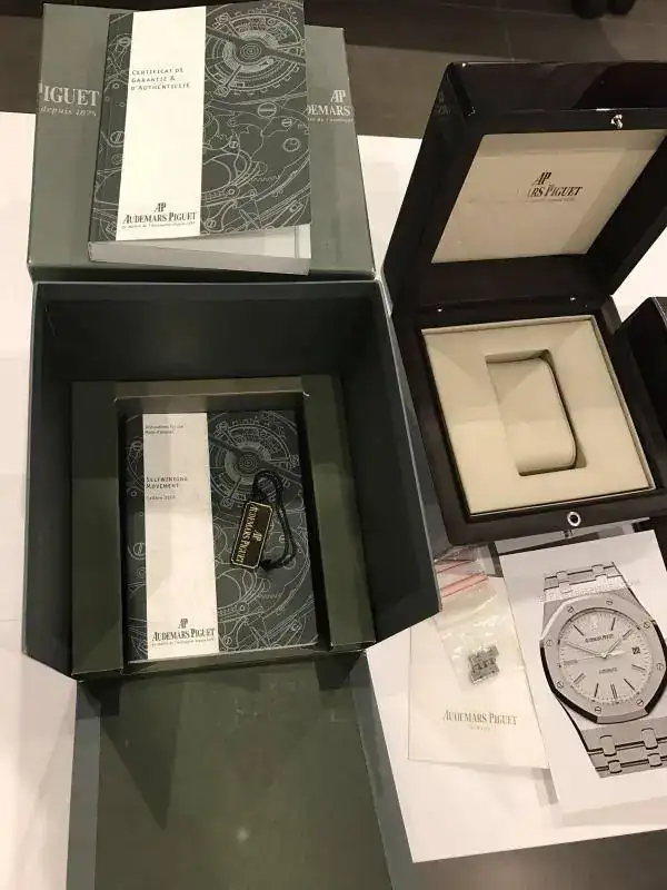 , con esfera color tipo blanco plata, en estado inmejorable !!!Nunca ha sido pulido, con revisión esta realizada en el 2.014, y entrego con toda su dotación, caja, documentación original AP, factura de revisión, eslabones sobrantes... todo en perfecto estado !!!