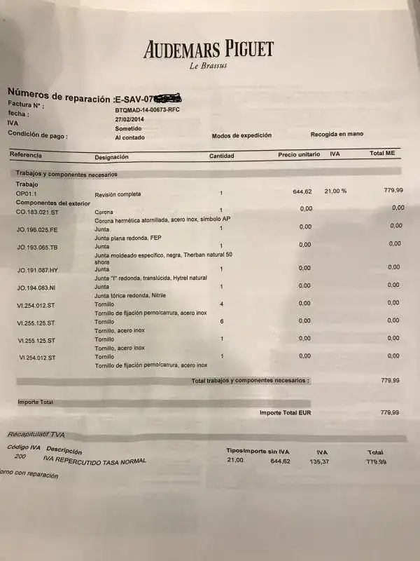 Como veis, la revisión completa se realizo en su fecha, siguiendo las recomendaciones del fabricante, el reloj ha estado muy mimado...